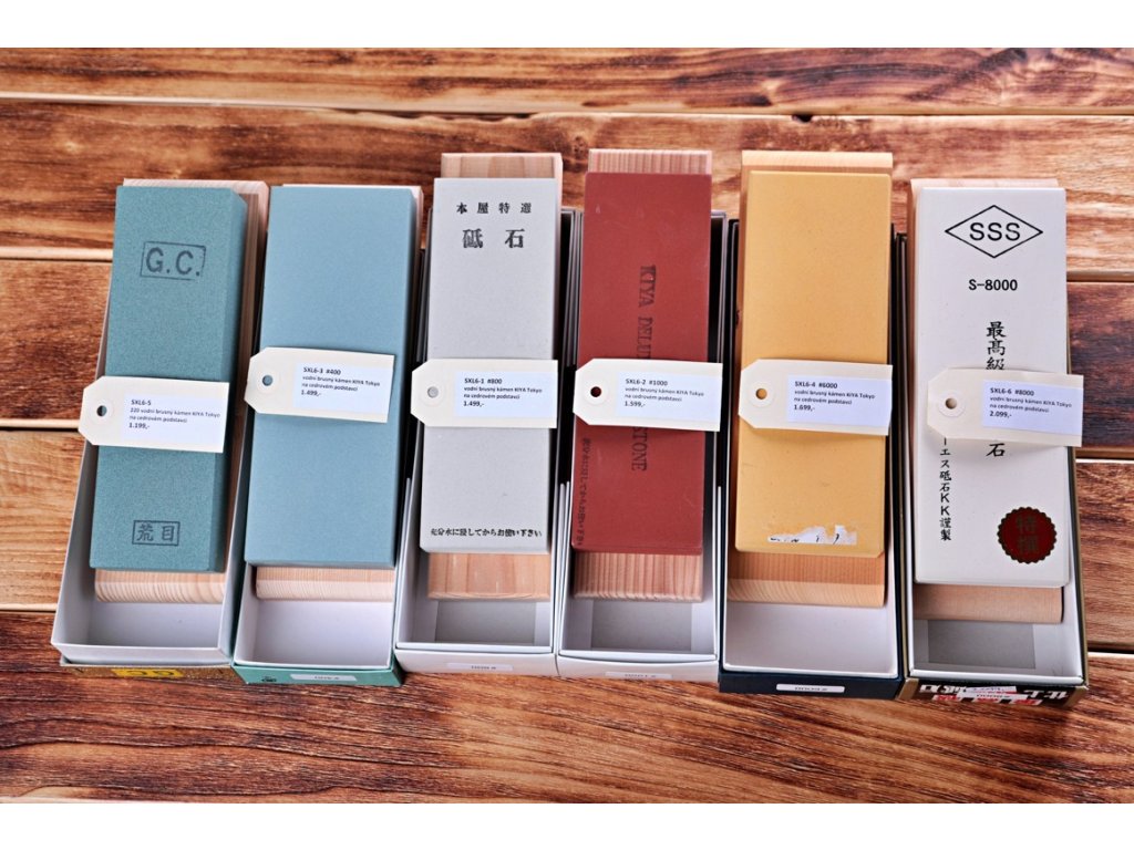 Japonský vodní brusný kámen KIYA vdechne Vašim nožům nový život ! Vaše kuchyňské, kuchařské a lovecké nože získají ostrost o které jste vždy jen snili. Budou mnohem ostřejší než v okamžiku, kdy jste nože koupili. Tento vodní brusný kámen není nutné namáčet - stačí polít trochou vody a broušení může začít. Syntetické brusné kameny jsou obecně vyrobeny z oxidu hlinitého. Jedná se o stejný brusný materiál používaný v olejových brusných kamenech. Rozdíl mezi nimi je však pojivo, které drží brusivo ve vodním kameni pohromadě. Vodní brusné kameny jsou měkčí než olejové brusné kameny, což umožňuje rychlejší broušení. Při broušení se starý abrazivní materiál odlomí a je nahrazen čerstvým ostrým materiálem. Rychlejší broušení je jednoznačně výhodou vodního brusného kamene. Další zjevnou výhodou je použití vody spíše než oleje k odstranění kovových třísek z brusného kamene. Vodní brusný kámen však není dokonalý. Měkkost brusného kamene, která podporuje rychlejší broušení má za následek rychlejší opotřebení. Opotřebení je také nerovnoměrné a vyžaduje časté rovnání brusné plochy. K tomu slouží srovnávací bloky, které naleznete v sekci příslušenství pro broušení