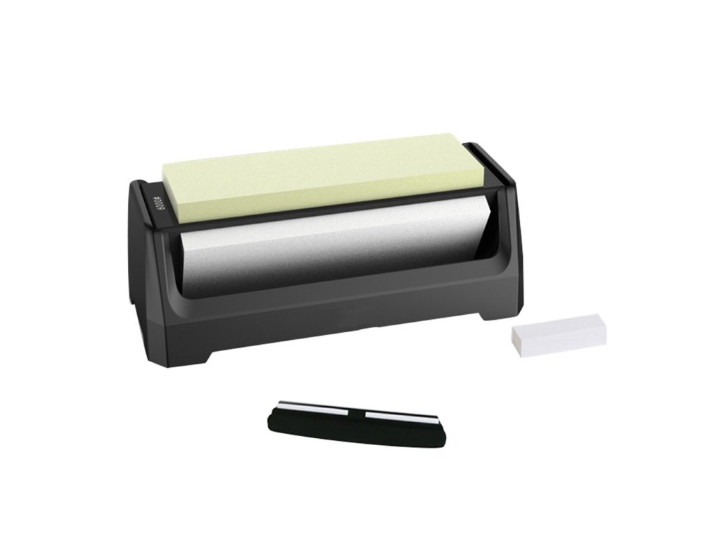 Kromě toho, abyste zajistili konzistentní broušení, nabízíme vodítko pro ruční broušení nožů. Držte stejný úhel broušení při každém tahu a na obou stranách nože díky tomuto účinnému pomocníkovi.