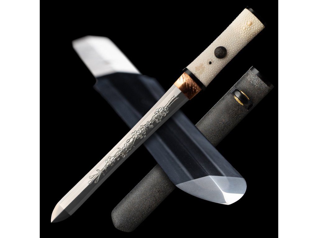 Aichi Tanto Tamahagane Flower Horimono s oboustranným hamonem Suguha