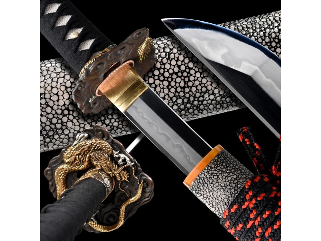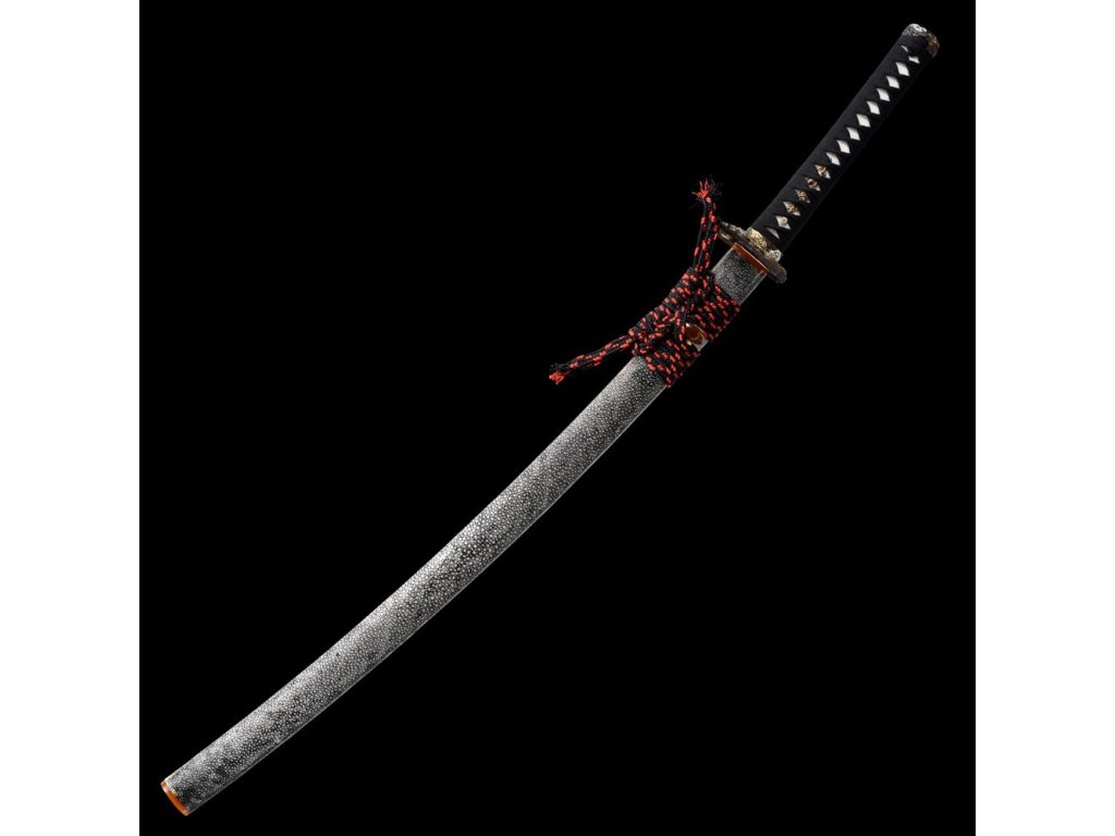 Plášť (saya) je vyroben z tvrdého dřeva a potažen pravou rejnočí kůží, doplněný precizním lakováním. Pevný hedvábný oplet (sageo) kolem knoflíku (kurigata) završuje elegantní design.