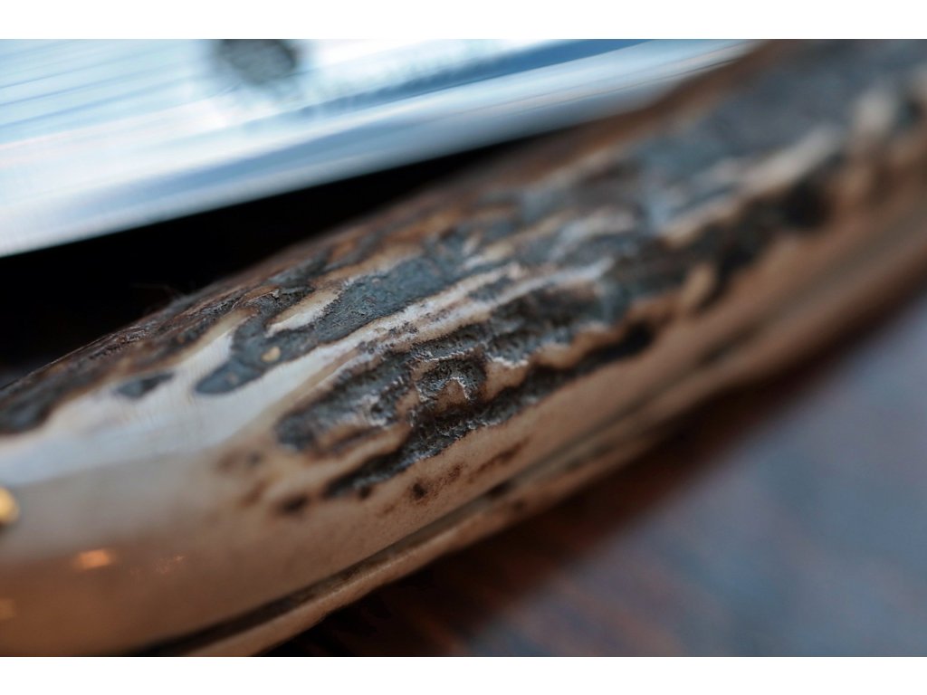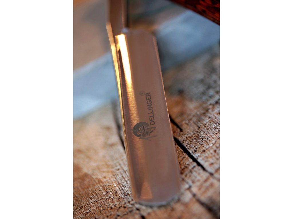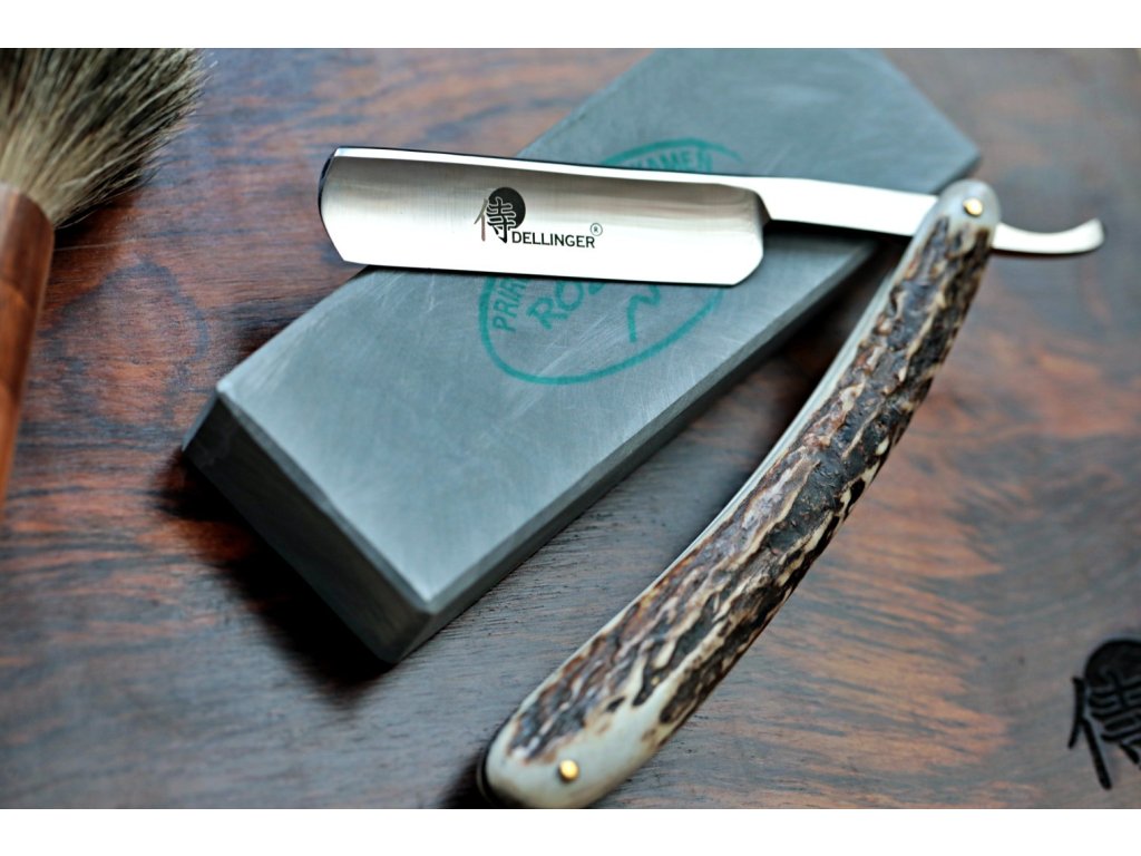 Velmi kvalitní, ručně vyrobená břitva s čepelí z oceli D2 o tvrdosti 59-60 HRC. Použití této velmi tvrdé oceli zajišťuje extrémní řezné vlastnosti. Čepel je broušena pod úhlem 15-20 stupňů a zajišťuje velmi jemné a optimální oholení. Rukojeť je ručně broušena z paroží. Vyváženost této břitvy je naprosto dokonalá a holení s břitvou Dellinger Antlers bude pro Vás jedinečným potěšením a zážitkem. Tato břitva je vhodná jak pro začátečníky, tak pro zkušené samuraje. S náležitou péčí se z této břitvy stane přítel na celý Váš život a kdo ví, možná i Vaše vnoučata se oholí s touto Vaší jedinečnou břitvou !