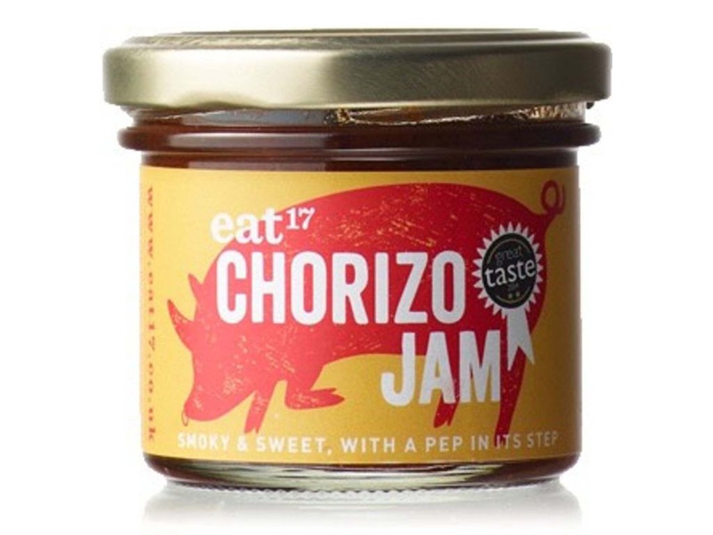 Snoubení chuti cibule s pikantní chorizo klobásou z Anglie. Skvělý doplněk jakéhokoli hamburgeru: snoubení cibule a kořeněné klobásy chorizo vytváří naprosto neopakovatelnou chuť. Tento jam se hodí jako doplněk k vydatným pokrmům, ale také k sýru, nebo jako tajná přísada v marinádách a omáčkách. Chorizo je pikantní sušená vepřová klobása ze Španělska s lehce pikantní chutí. Hlavními ingrediencemi choriza jsou mleté vepřové maso, mletá paprika a česnek. Paprika může být sladká nebo pálivá, podle požadované pikantnosti výrobku. Ve Španělsku se také používá mletá uzená paprika Pimentón de Vera, která dává chorizu uzenou chuť.