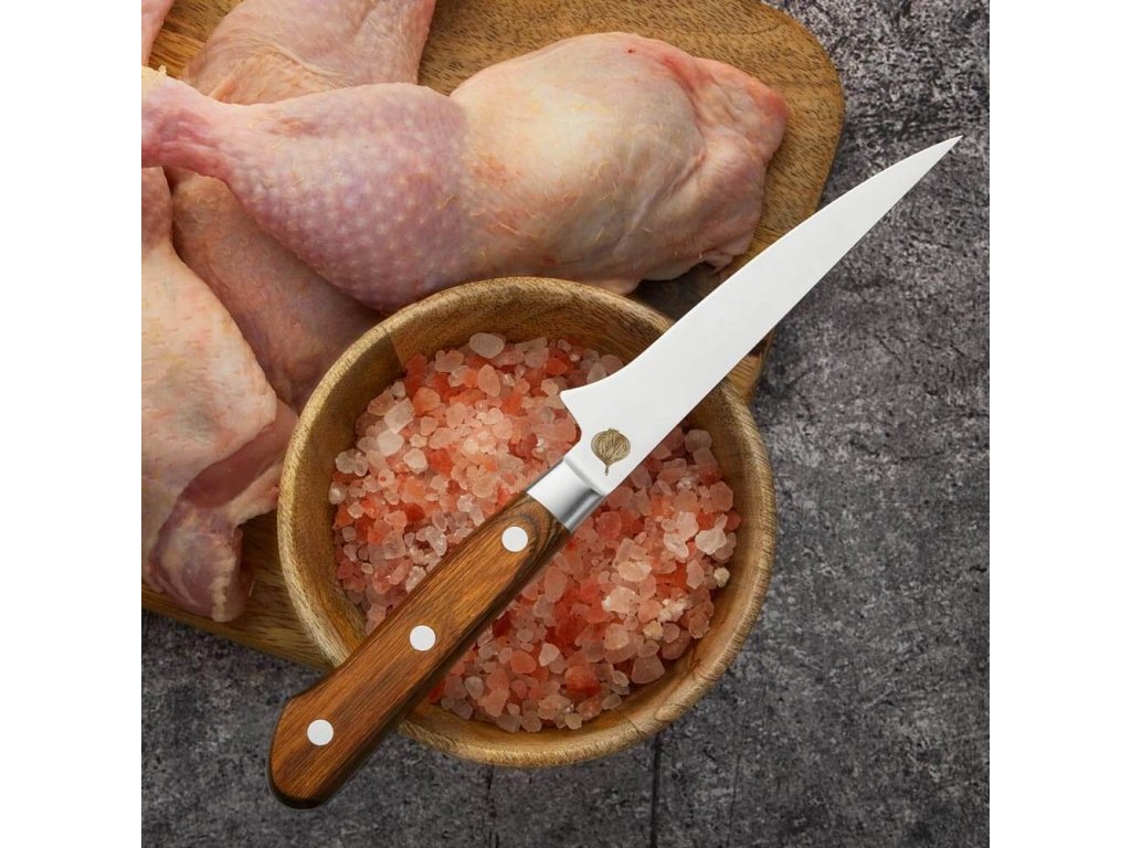 Rukojeť z pakkawoodu ti sedne do dlaně jako ulitá. Ergonomický tvar zajistí pohodlí i při delší práci. Materiál je odolný, hygienický a připravenej na každodenní nasazení v profi kuchyni.