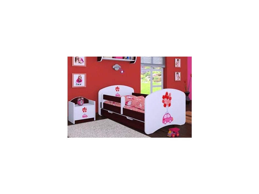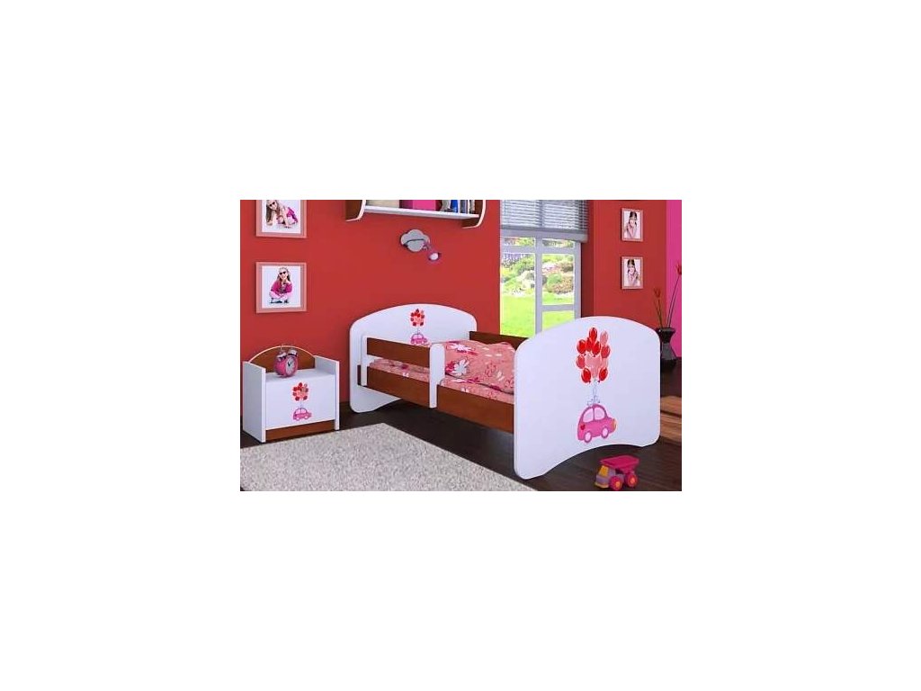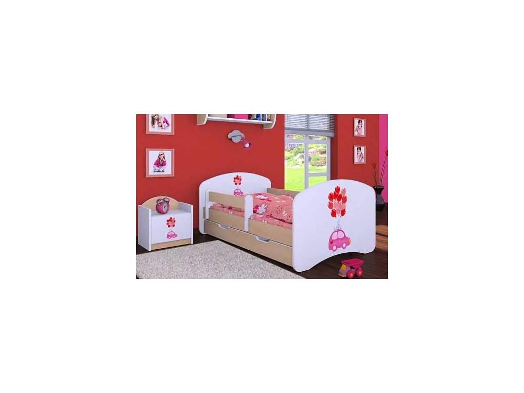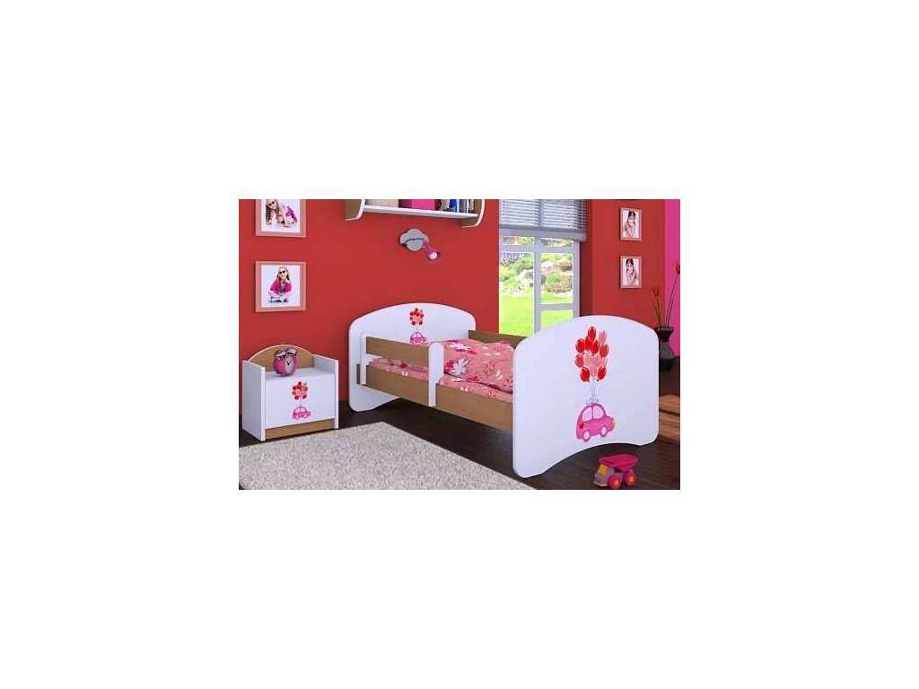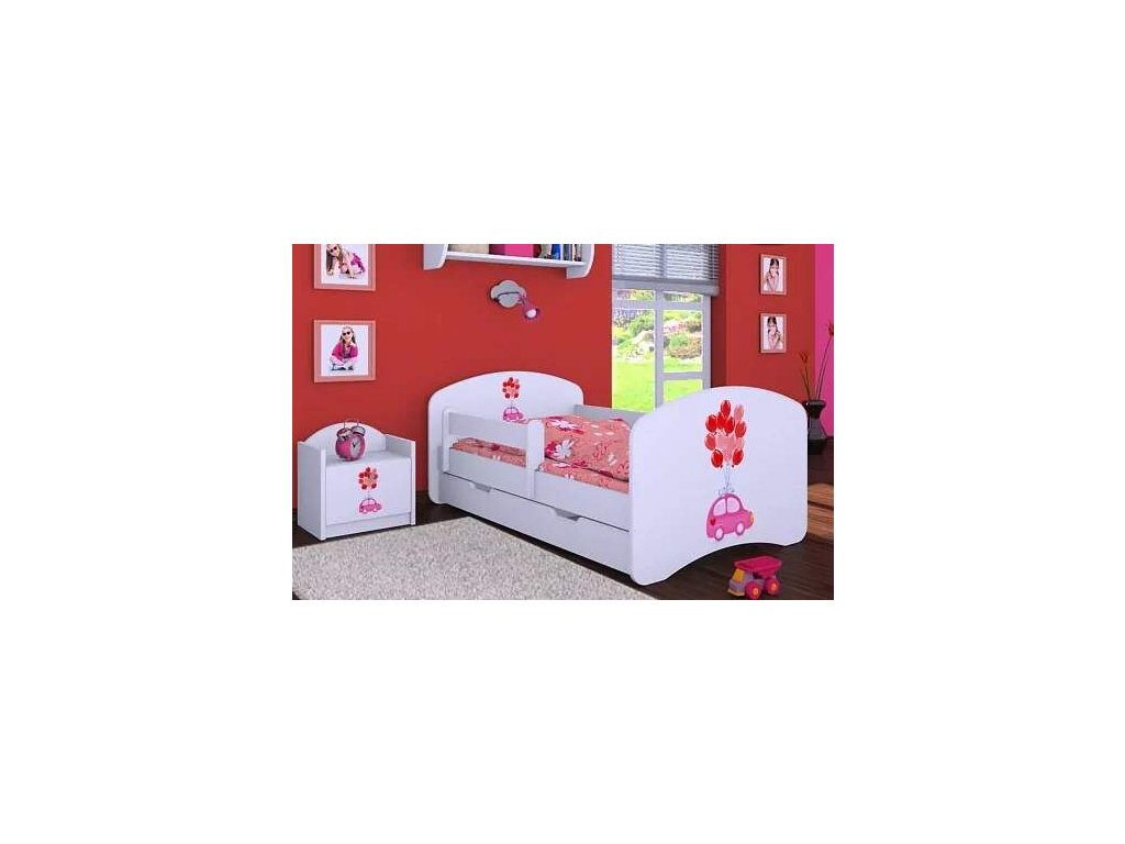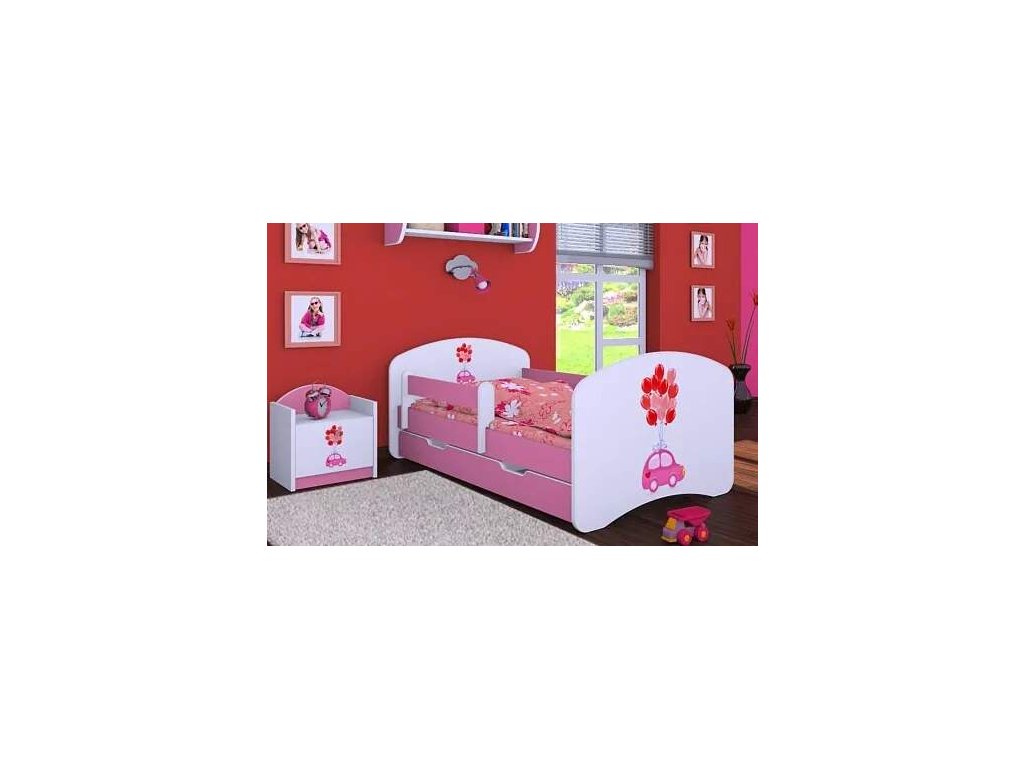 Dětská postel Happy Babies - růžové auto s balonky
