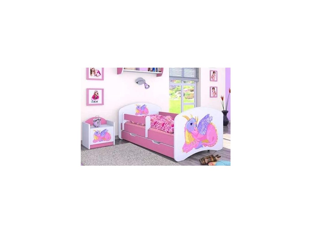 Dětská postel Happy Babies - růžový dráček