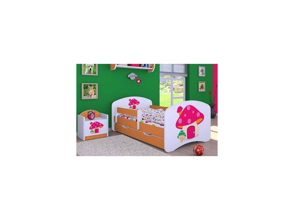 Do každého dětského pokojíčku patří nezbytně dětská postel. Nabízíme krásné, kvalitní dětské postele v desítkách různých vzorů, které jistě zaujmou Vás i Vaše děti. Postele jsou vyrobeny z vysoce kvalitních lamino desek. K tištění obrázků, které jsou na čelech postele jsou použity ekologické barvy, které jsou navíc fixovány laminátovým profilem, aby nedocházelo k opotřebení nebo vyblednutí barvy. Okraje postele jsou bez ostrých hran. Rošt postele je vyroben z kvalitních borovicových lišt, které mají tloušťku min. 2 cm. Zábrana, která je součástí postele chrání dítě před pádem z postele během spánku a je odnímatelná. Lze jí dát z levé i pravé strany dle potřeby.Precizní zpracování a použité materiály zajištují, že každá námi nabízená dětská postel je kvalitní a velmi odolná. V ceně postele je rošt, matrace a zábrana. Nosnost postele je do 100 kg. Postel je možné zakoupit v různých velikostech a barevných provedeních. Dětskou postel můžeme vyrobit také bez motivu nebo pouze v barevném dekoru. Ve stejném motivu jako budete mít postel lze zakoupit také skříň, box na hračky, regál, knihovnu, noční stolek, psací stůl nebo poličku. Vše naleznete v naší nabídce.Buďte první, kdo napíše příspěvek k této položce.