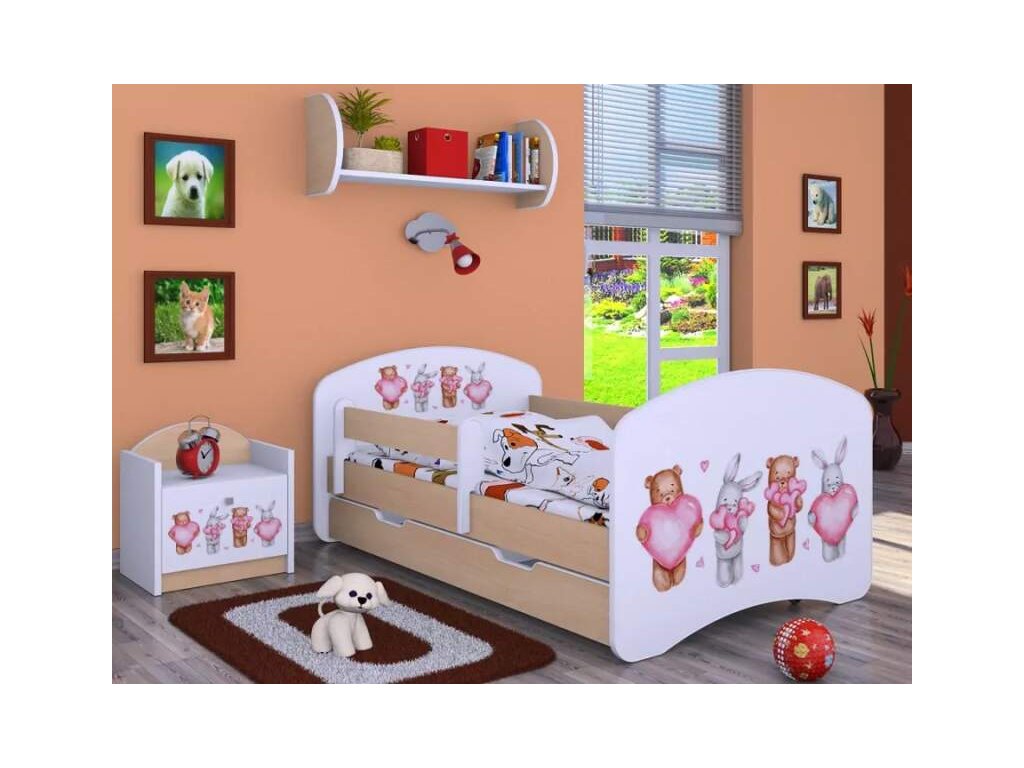 Dětská postel Happy Babies - zvířátka se srdíčkama