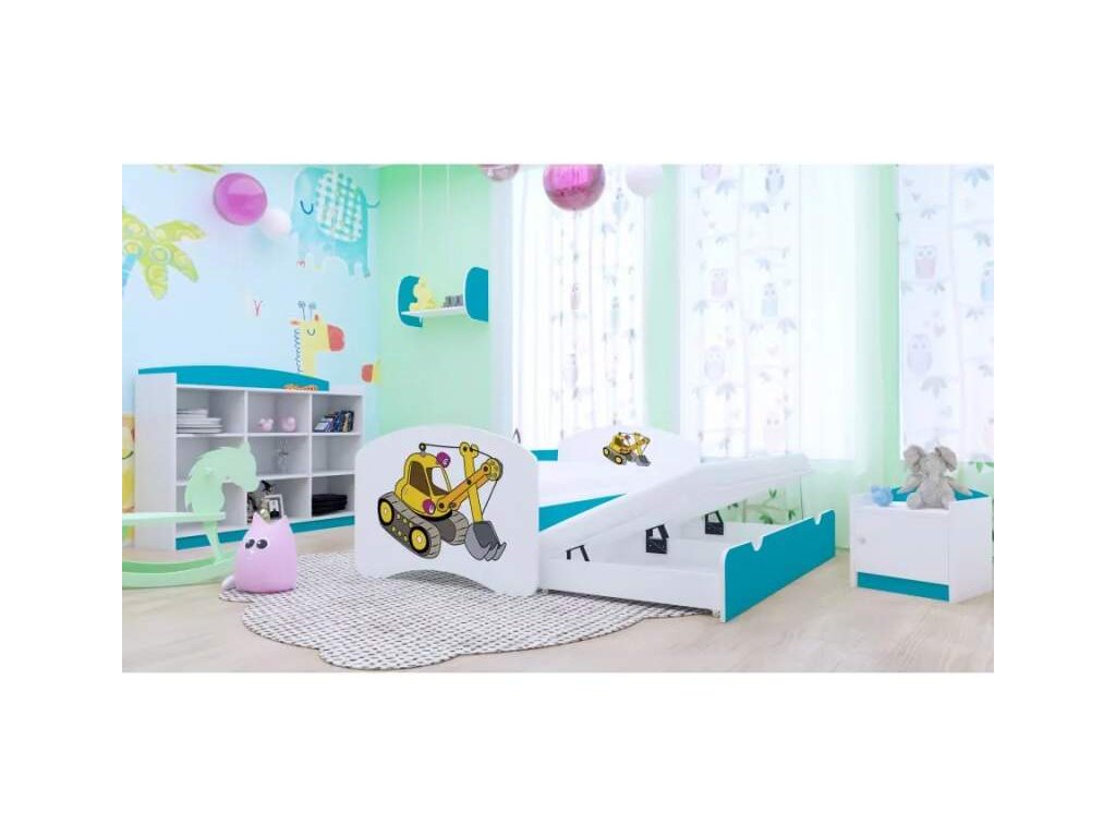 Dětská postel Happy pro dvě děti - žlutý bagr