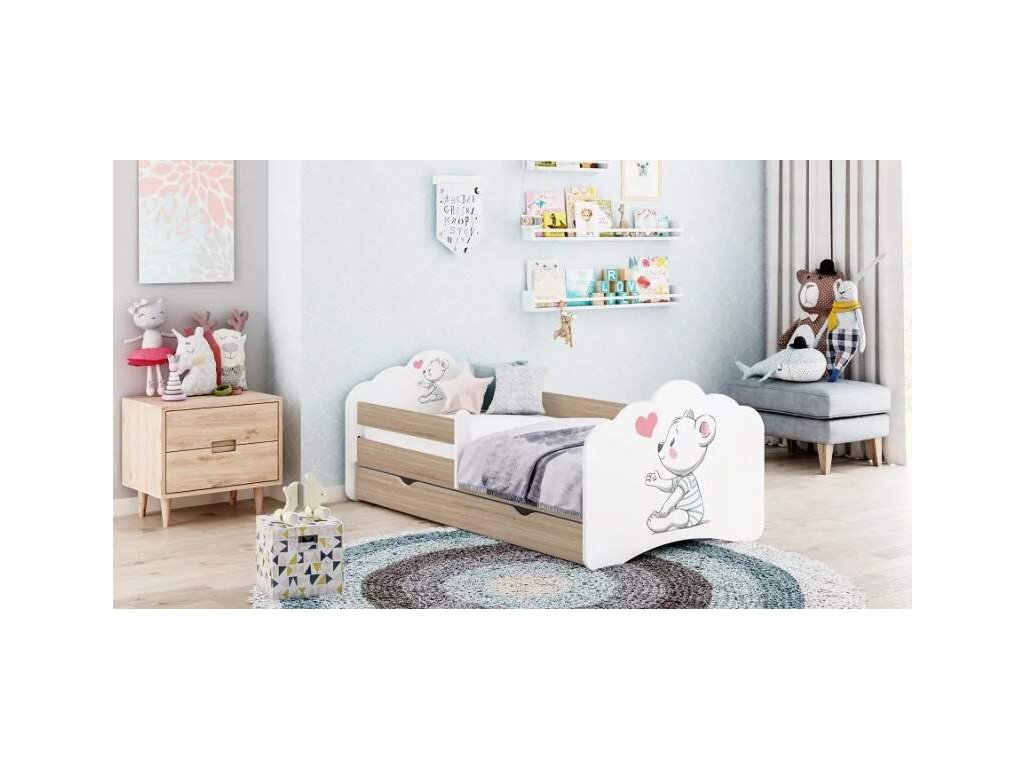 Nejdůležitějším prvkem dětského pokoje je dětská postel, a proto se snažíme hledat dle těch nevhodnějších parametrů. Klademe důraz na nosnost, bezpečnost, funkčnost a vzhled. Postel Tobík vše uvedené splňuje. Nosnost postele je do 95 kg! Postel je vyrobena z vysoce kvalitní nábytkové desky o tloušťce 18 mm, všechny hrany jsou zaoblené a zajištěny speciální hranou. Postel Tobík disponuje také bezpečnostní zábranou, která je odnímatelná a chrání dítě před nárazem. Na výběr máme ze spousty vzorů, které malé ratolesti jistě ocení. Důraz je kladen na barevnost a hravost. Skvělou možností je také to, že postel můžete doladit k ostatnímu nábytku, jelikož zábranu a šuplík si můžete zvolit barevný. Výrobce nabízí na výběr z barev: bílá, cappucino, tmavě šedá, dub sonoma, grafit, modrá, oranžová, růžová a zelená Co se velikostí týče, tak se tato postel vyrábí v rozměrech: 140x70 cm s šuplíkem 160x80 cm s šuplíkem 180x90 cm s šuplíkem 190x90 cm s šuplíkem Matrace k této posteli je dodávaná základní molitanová s pratelným potahem, ale můžeme nabídnout také kvalitnější matrace za zvýhodněné ceny. Výrobce má v nabídce např. matraci s pohankou, popř. pohanka s kokosem. V ceně postele je také: rošt z bukového dřeva, který zlepšuje kvalitu spánku ( skládá se z lamel o tloušťce 8mm spojených páskou) základní molitanovou matraci s pratelným potahem úložný prostor, který je na 4 gumových kolečkách zajišťující dobrou manipulaci Postel je univerzální, je tedy možné jí smontovat na pravou či levou stranu.Buďte první, kdo napíše příspěvek k této položce.