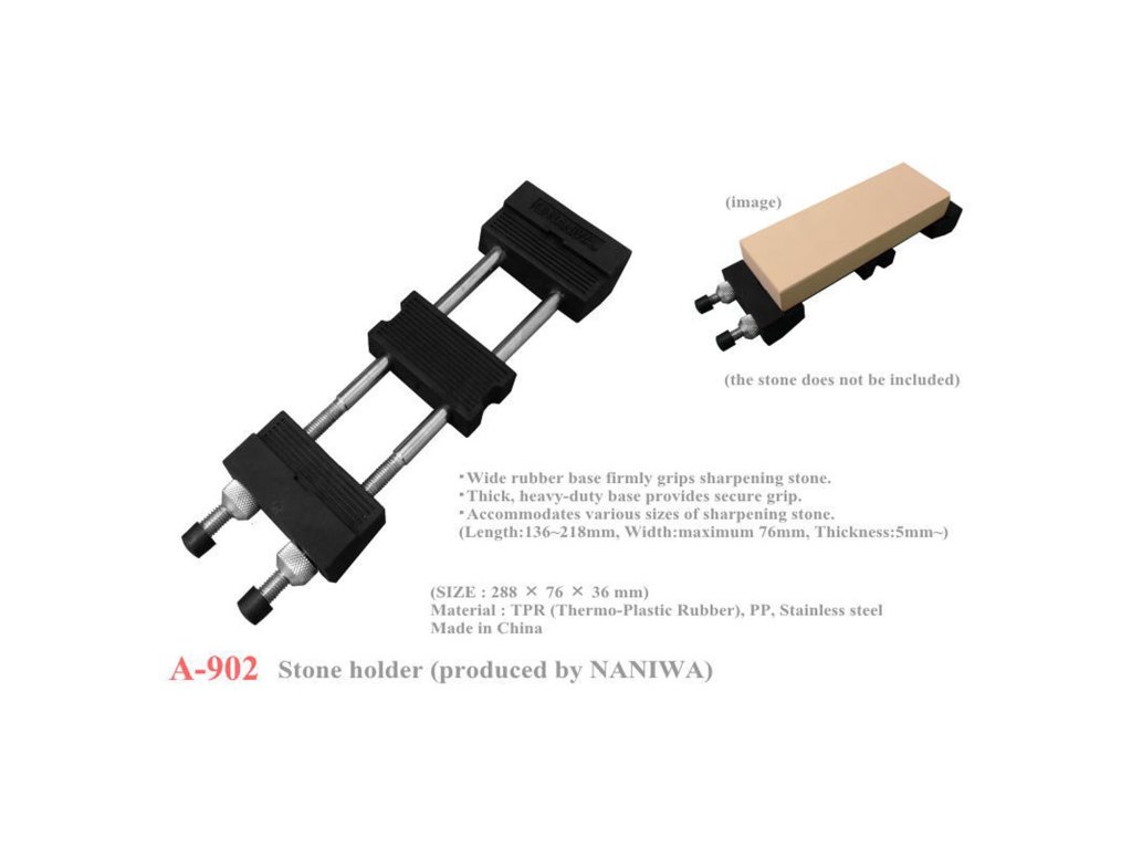 Praktický držák na brusné kameny různých rozměrů. Díky pohyblivé patce se zarážkou nastavíte pomocí vodících šroubů požadovaný rozměr kamene a jeho pevné upnutí. Protiskluzový povrch spodní části držáku skvěle zajistí přilnavost přípravku k pracovní ploše a tím i přesnou práci s brusným kamenem.