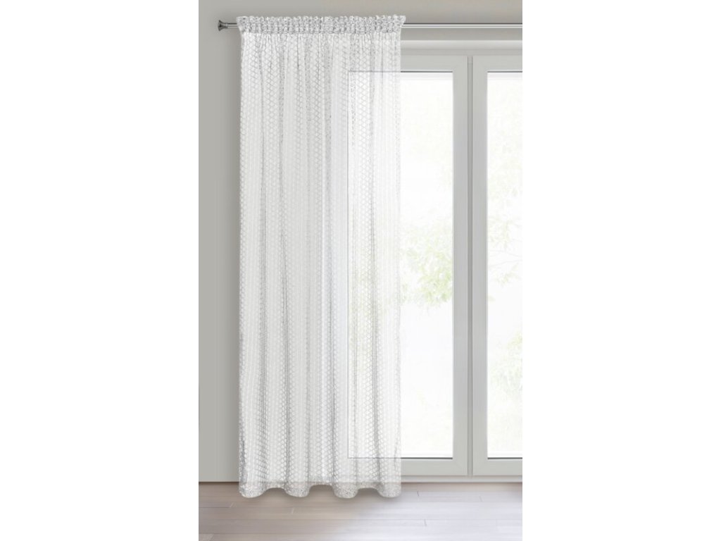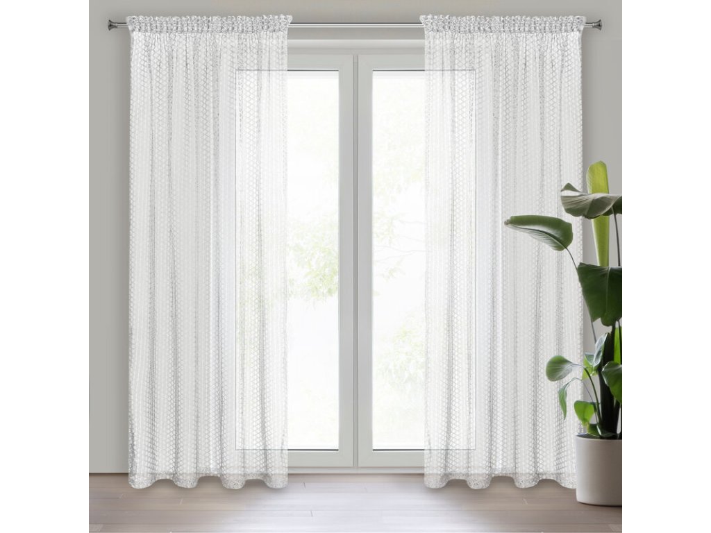 Nowoczesna firana z nieregularnej siateczki o subtelnym połysku i róznej wielkości oczek. Doskonała również w roli dekoracyjnej zasłony. Nie należy wybielać. szerokość: 140 cm, długość: 270 cm, kolor: BÍLÝ, Gramatura: 75 GSM, Skład: 100% poliesterDoplňkové parametry