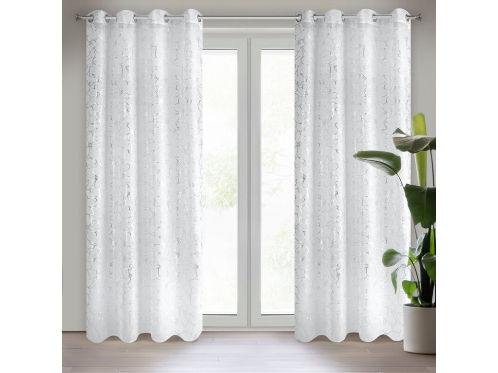 Firana gotowa ze STŘÍBRNÝm nadrukiem szerokość: 140 cm, długość: 250 cm, kolor: BÍLÝ, Gramatura: 80 GSM, Skład: 100% poliesterDoplňkové parametry
