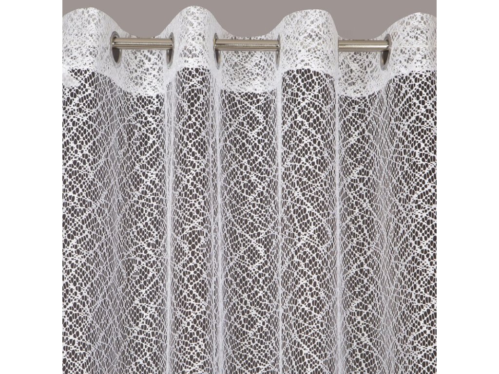 Nowoczesna firana z nieregularnej siateczki o subtelnym połysku i róznej wielkości oczek. Doskonała również w roli dekoracyjnej zasłony. Nie należy wybielać. szerokość: 140 cm, długość: 250 cm, kolor: BÍLÝ, Gramatura: 120 GSM, Skład: 100% poliesterDoplňkové parametry