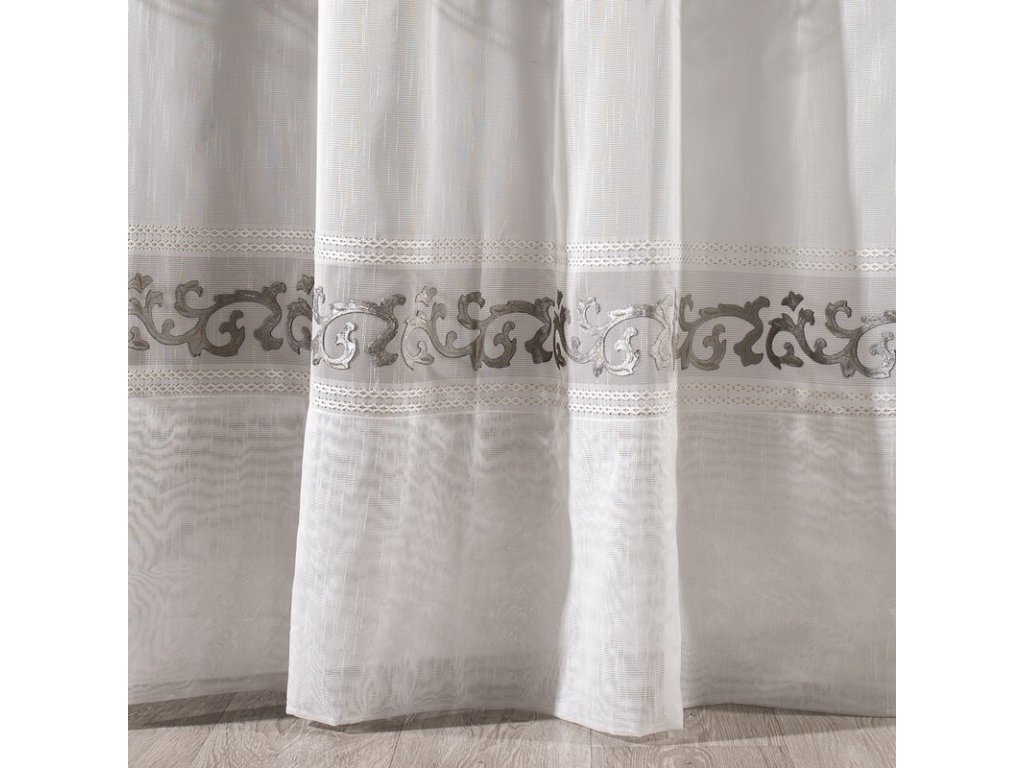 Firana gotowa zdobiona efektownym welwetowym wzorem szerokość: 140 cm, długość: 270 cm, kolor: BÍLÝ, Gramatura: 70 GSM, Skład: 100% poliesterDoplňkové parametry