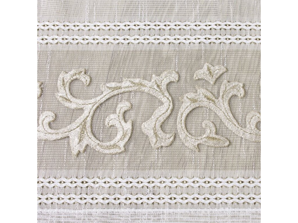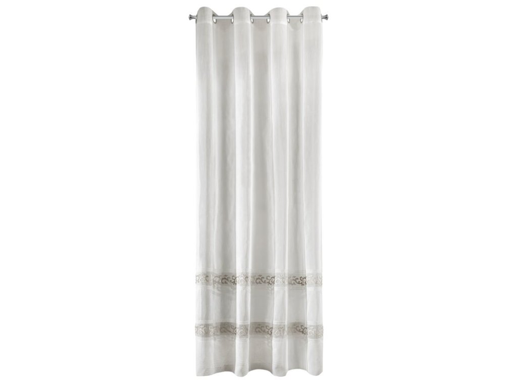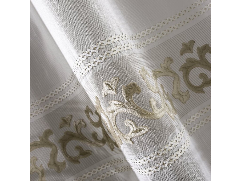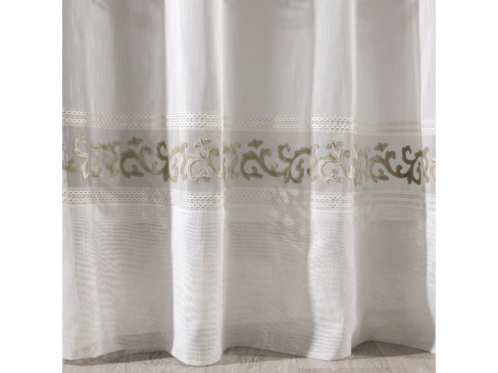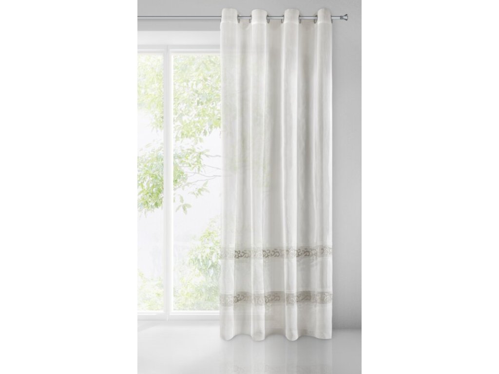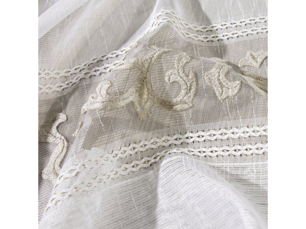 Firana gotowa zdobiona efektownym welwetowym wzorem szerokość: 140 cm, długość: 270 cm, kolor: BÍLÝ, Gramatura: 70 GSM, Skład: 100% poliesterDoplňkové parametry