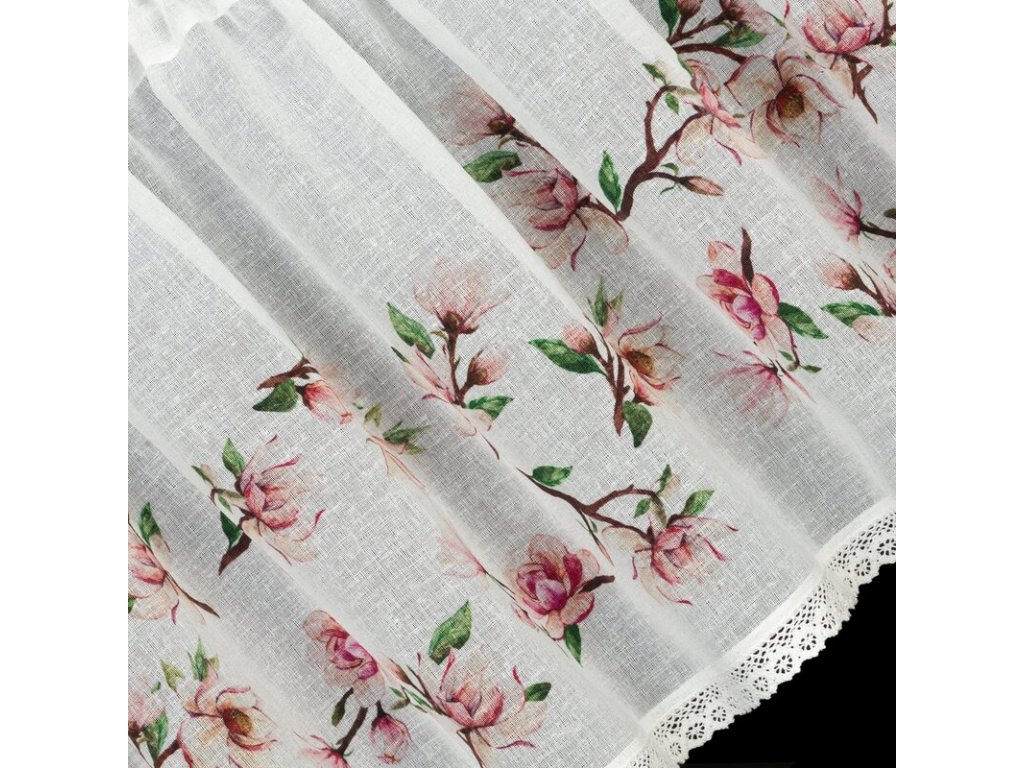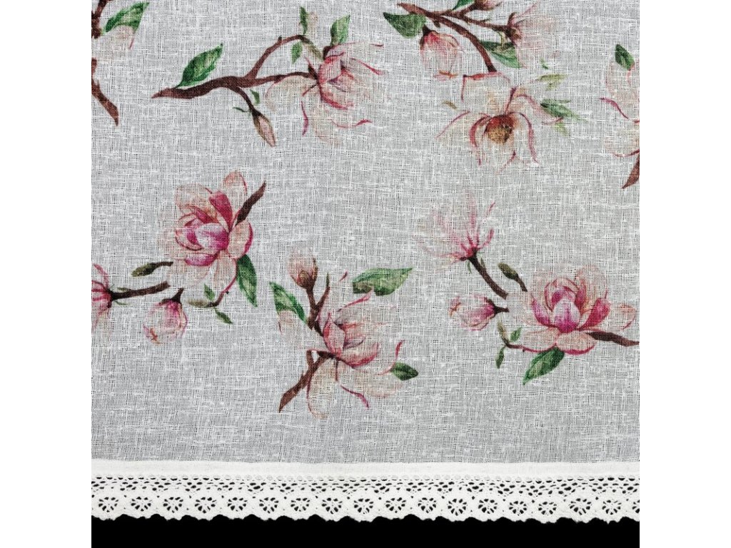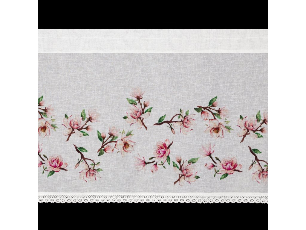 Zazdrostka z nadrukiem zdobiona koronką szerokość: 150 cm, długość: 60 cm, kolor: BÍLÝ, Gramatura: 110 GSM, Skład: 100% poliesterDoplňkové parametry