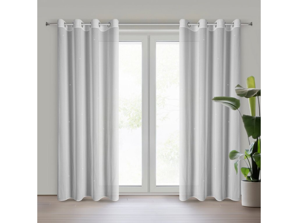 Firana gotowa szyfonowa zdobiona diamencikami szerokość: 140 cm, długość: 250 cm, kolor: BÍLÝ, Gramatura: 60 GSM, Skład: 100% poliesterDoplňkové parametry