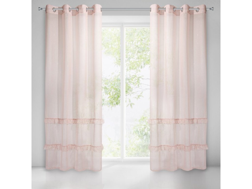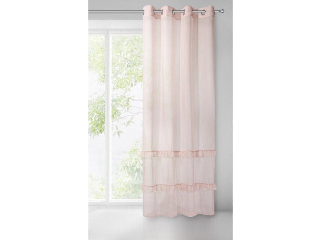 Firana jednokolorowa z moherową błyszcząca nicią zdobiona falbanami szerokość: 140 cm, długość: 250 cm, kolor: RŮŽOVÝ, Gramatura: 50 GSM, Skład: 100% poliesterDoplňkové parametry