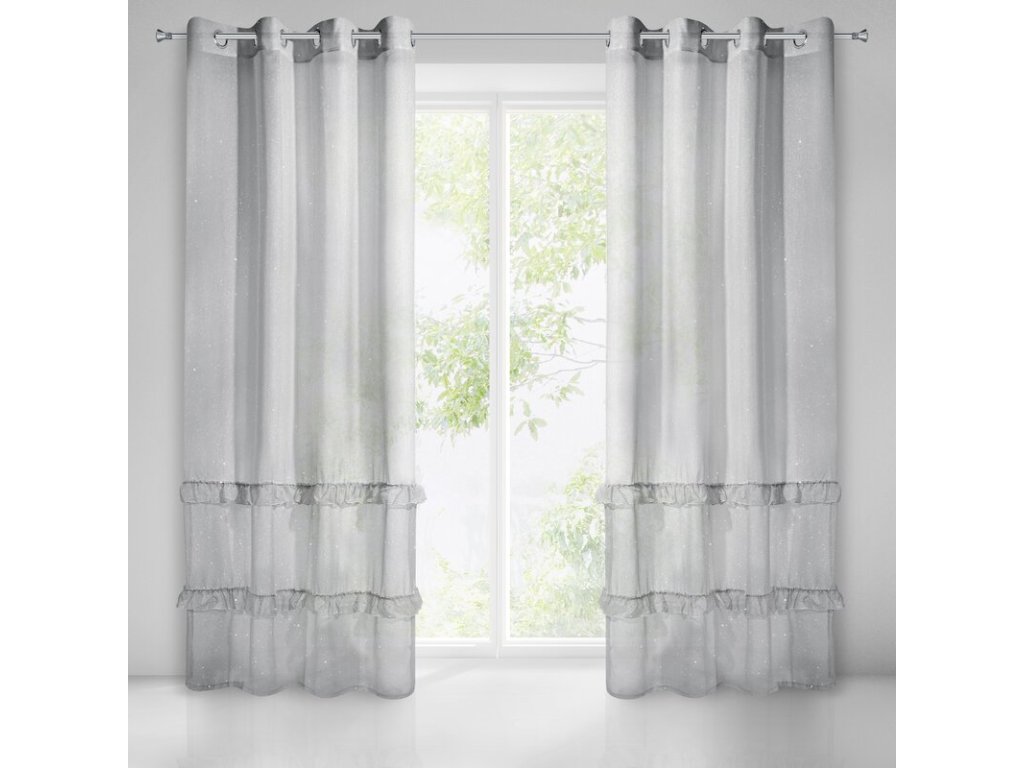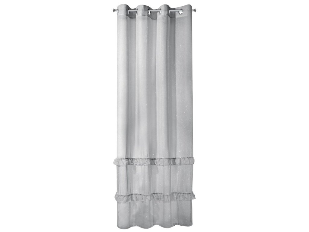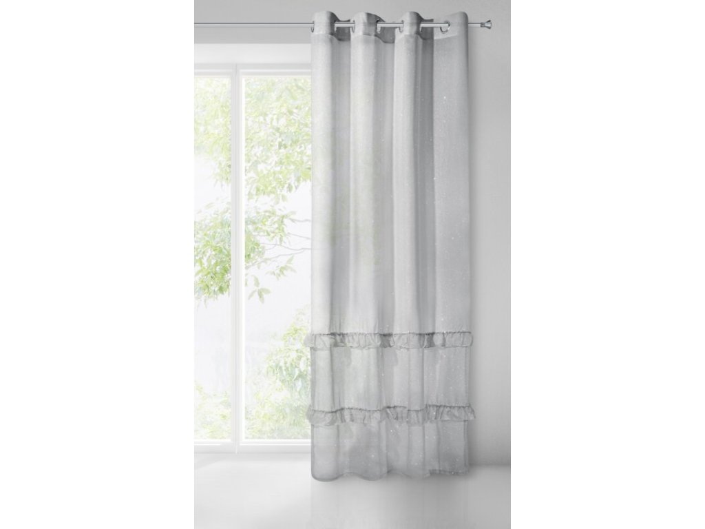 Firana jednokolorowa z moherową błyszcząca nicią zdobiona falbanami szerokość: 140 cm, długość: 250 cm, kolor: ŠEDÝ, Gramatura: 50 GSM, Skład: 100% poliesterDoplňkové parametry