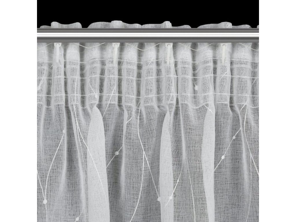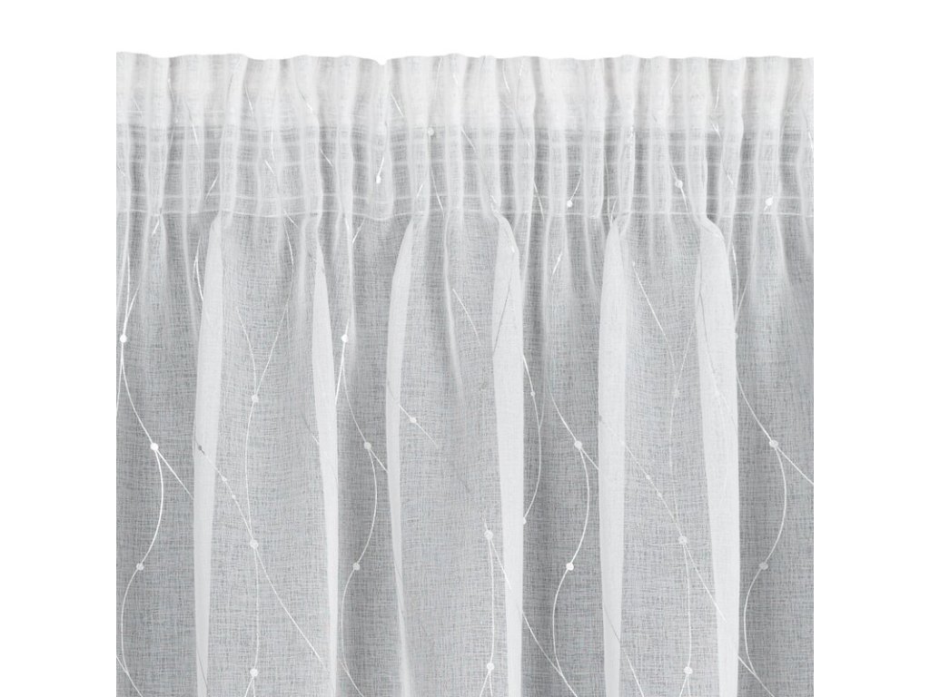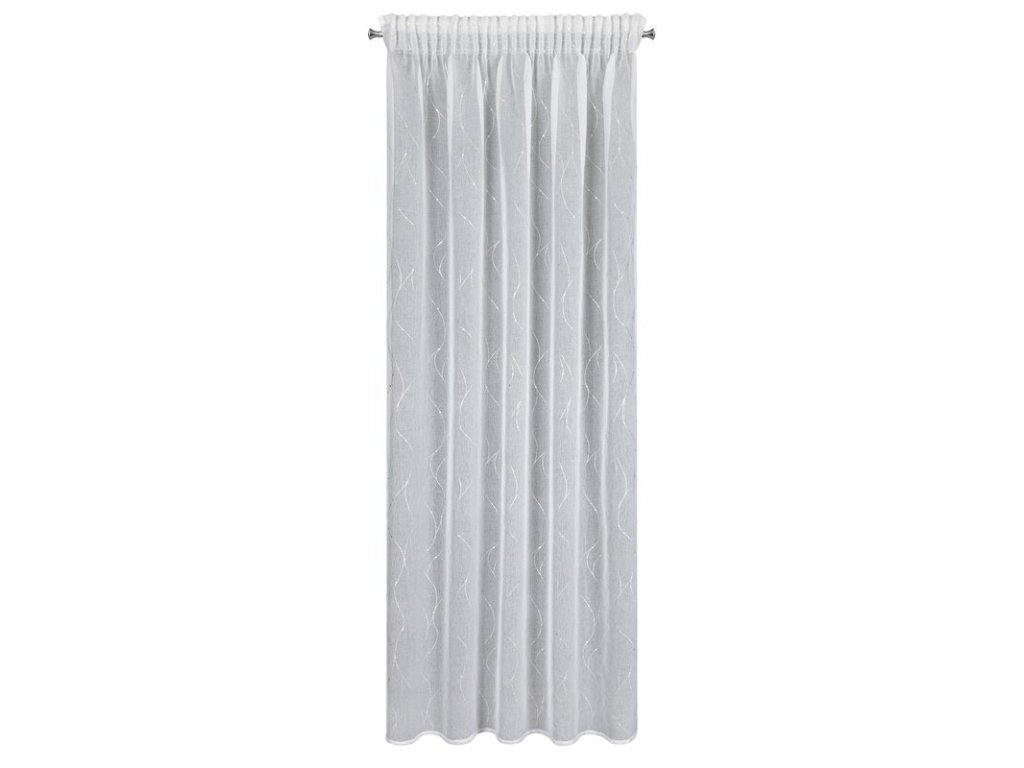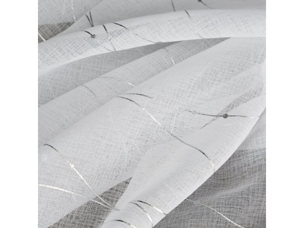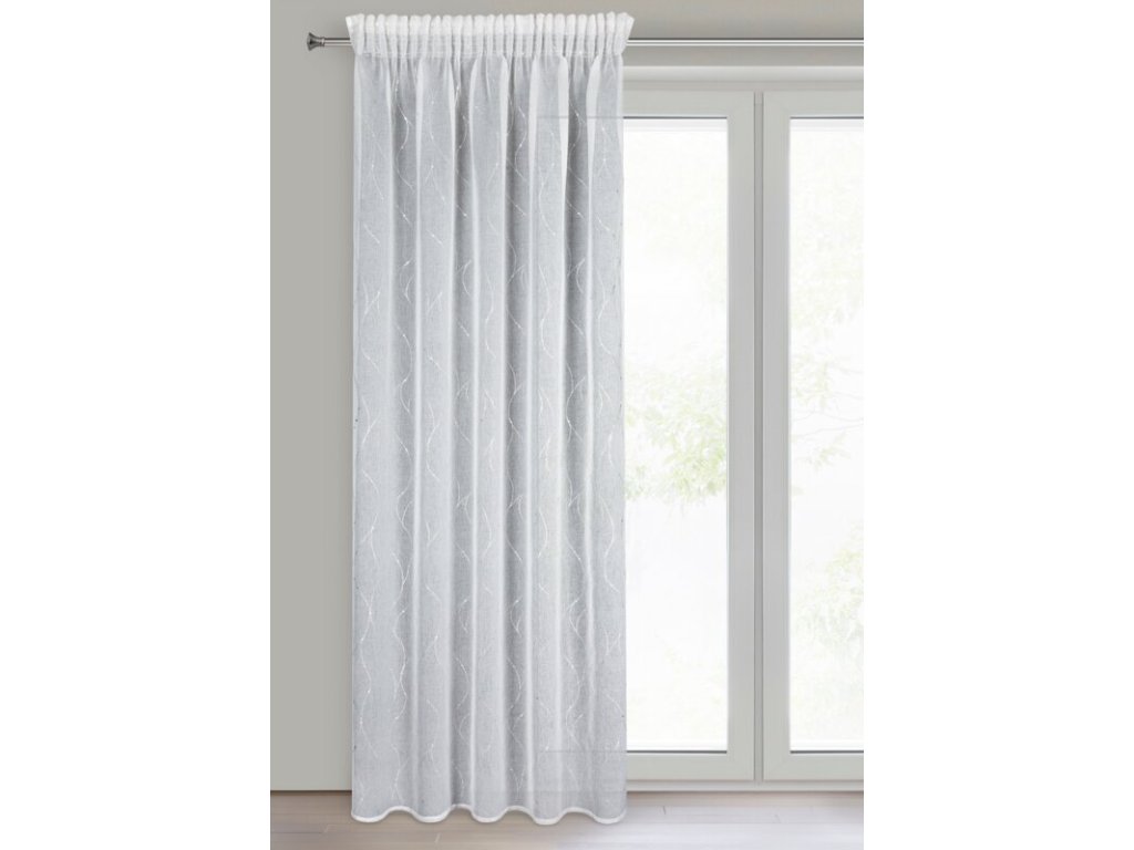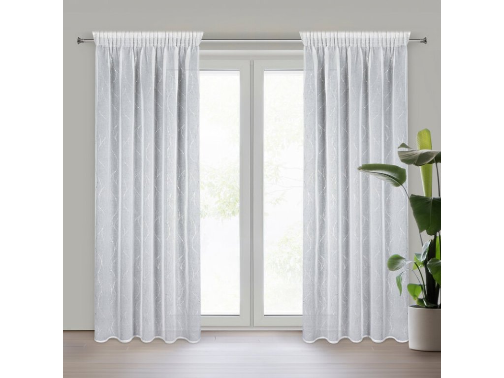 Firana gotowa ze STŘÍBRNÝm nadrukiem szerokość: 140 cm, długość: 270 cm, kolor: BÍLÝ, Gramatura: 72 GSM, Skład: 100% poliesterDoplňkové parametry