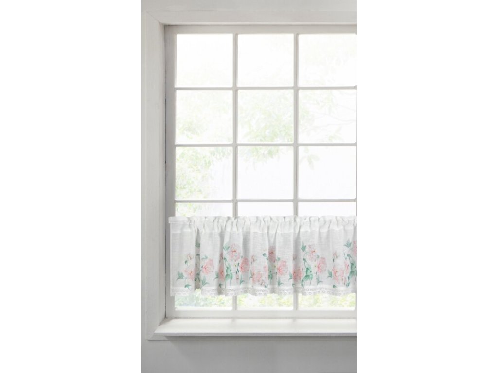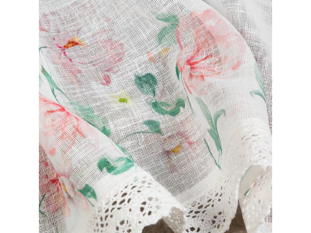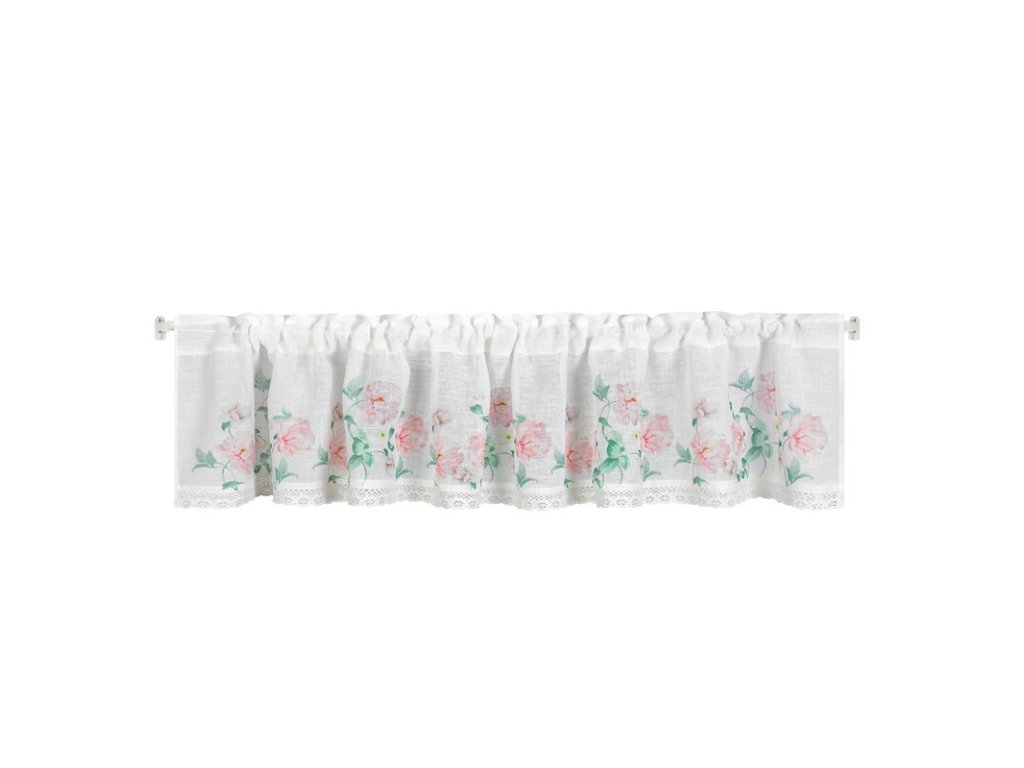 Zazdrostka z nadrukiem zdobiona koronką szerokość: 150 cm, długość: 30 cm, kolor: BÍLÝ, Gramatura: 165 GSM, Skład: 100% poliesterDoplňkové parametry