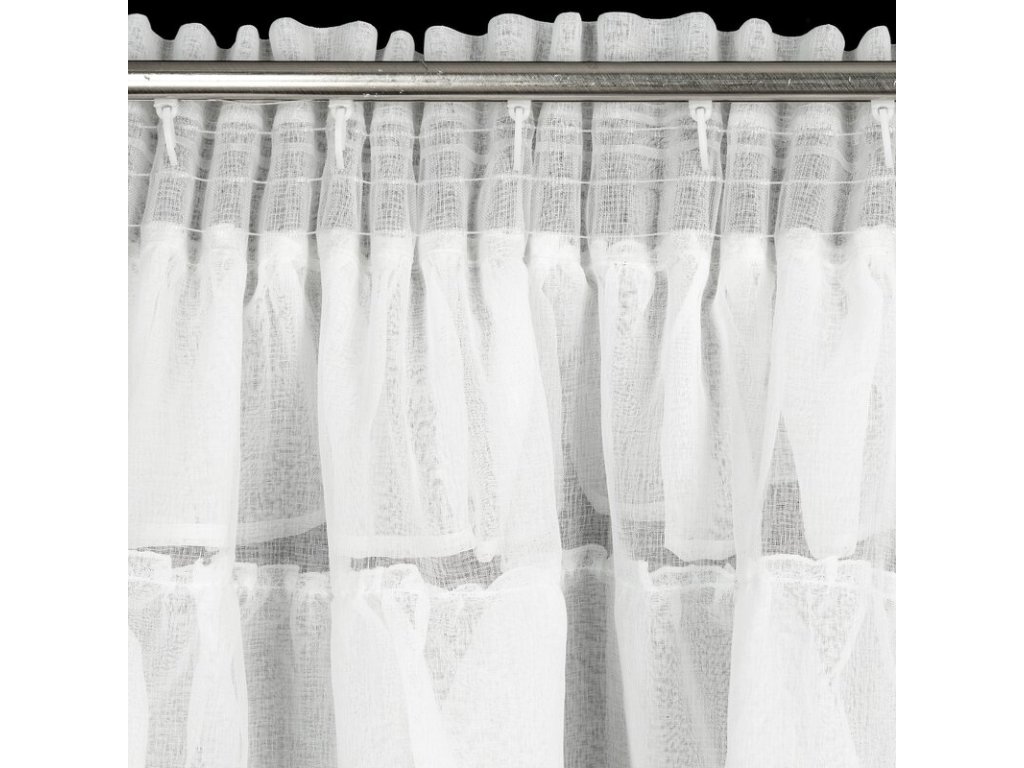 Firana gotowa zdobiona w górnej części falbankami szerokość: 140 cm, długość: 270 cm, kolor: BÍLÝ, Gramatura: 70 GSM, Skład: 100% poliesterDoplňkové parametry