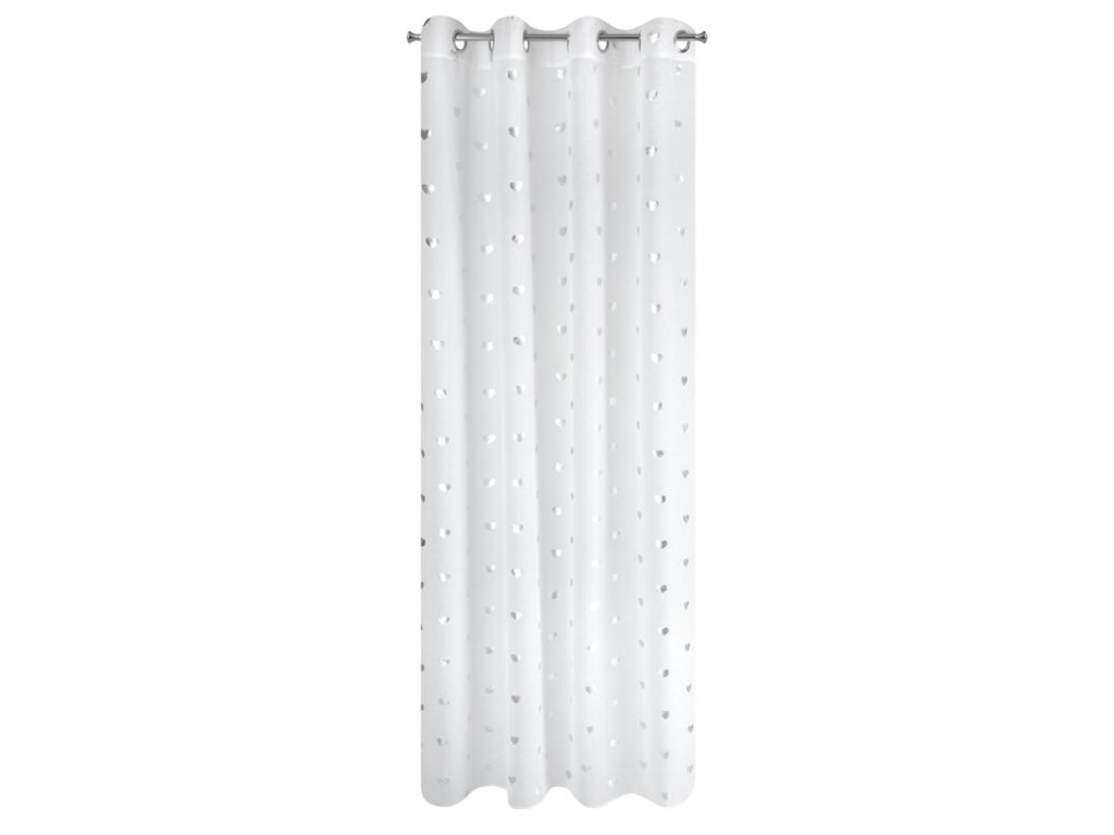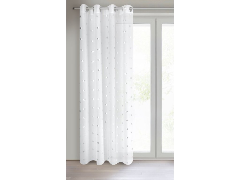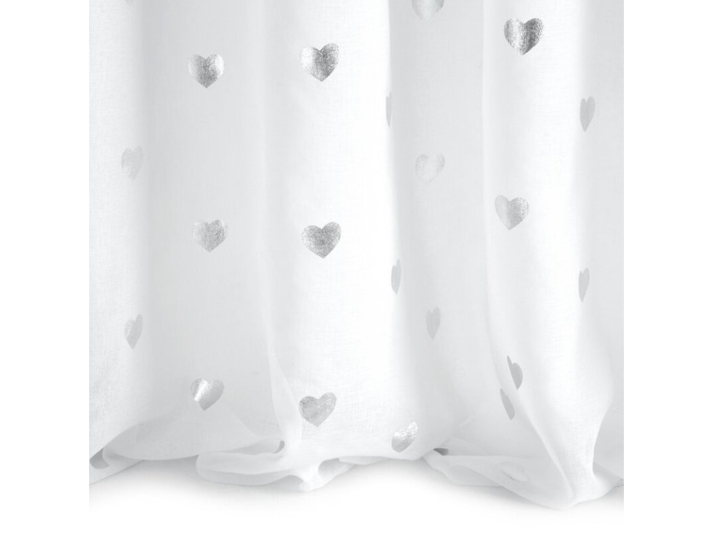 Subtelna firana z białej tkaniny ze STŘÍBRNÝm nadrukiem w kształcie drobnych serduszek. Lekki materiał doskonale wyglada w roli dekoracyjnych zasłon. szerokość: 140 cm, długość: 250 cm, kolor: BÍLÝ, Gramatura: 70 GSM, Skład: 100% poliesterDoplňkové parametry