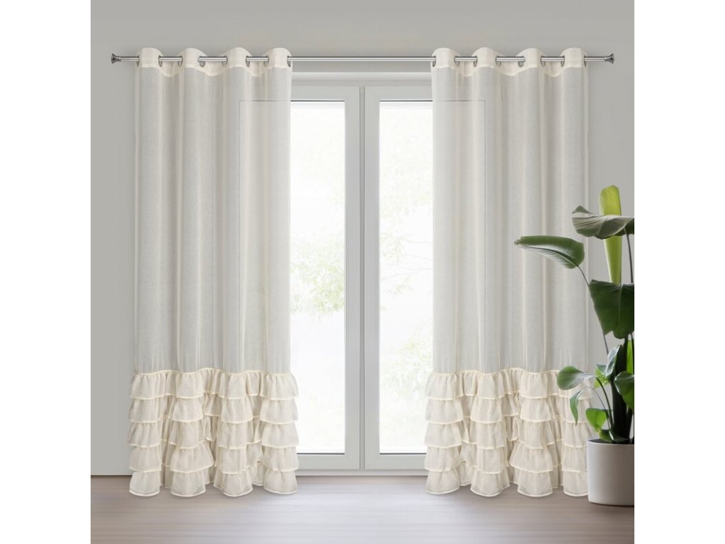 Firana gotowa z falbanami i ozdobnymi cyrkoniami szerokość: 140 cm, długość: 250 cm, kolor: BÉŽOVÝ, Gramatura: 70 GSM, Skład: 100% poliesterDoplňkové parametry