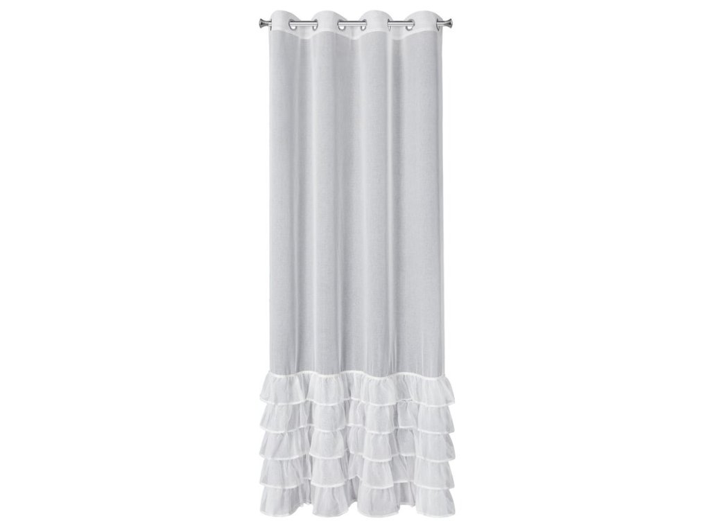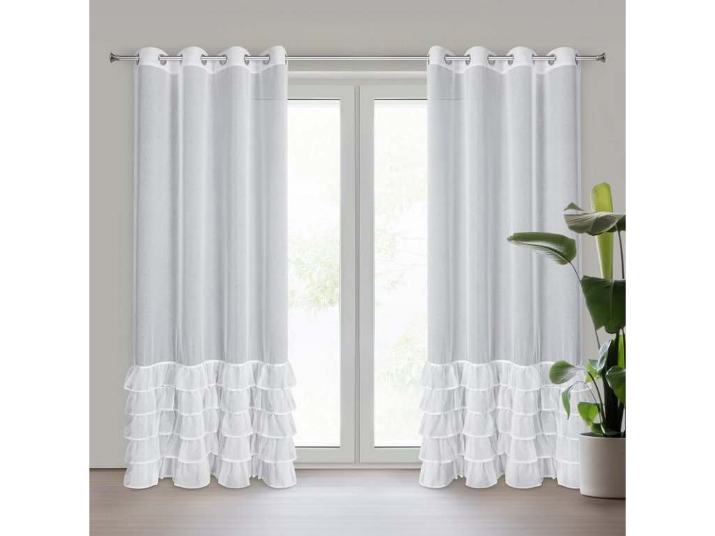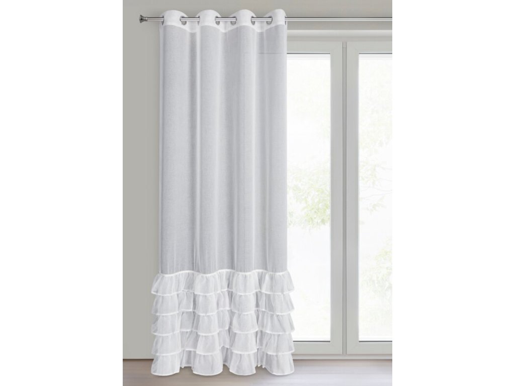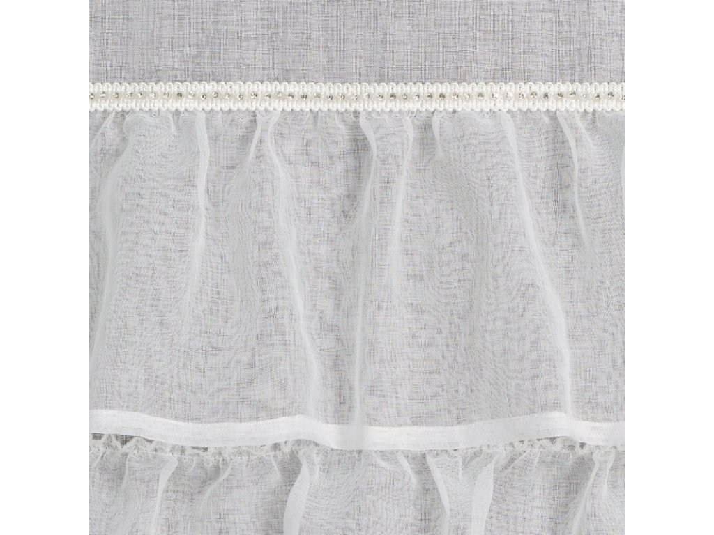 Firana gotowa z falbanami i ozdobnymi cyrkoniami szerokość: 140 cm, długość: 250 cm, kolor: BÍLÝ, Gramatura: 70 GSM, Skład: 100% poliesterDoplňkové parametry