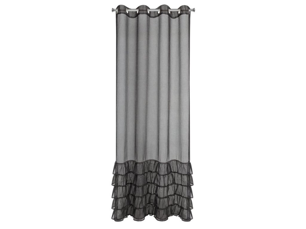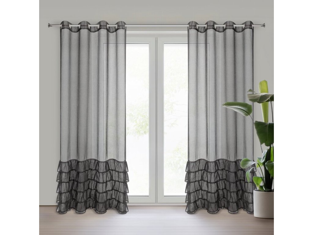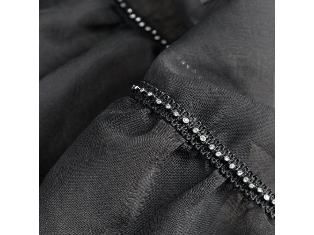 Firana gotowa z falbanami i ozdobnymi cyrkoniami szerokość: 140 cm, długość: 250 cm, kolor: ČERNÝ, Gramatura: 70 GSM, Skład: 100% poliesterDoplňkové parametry