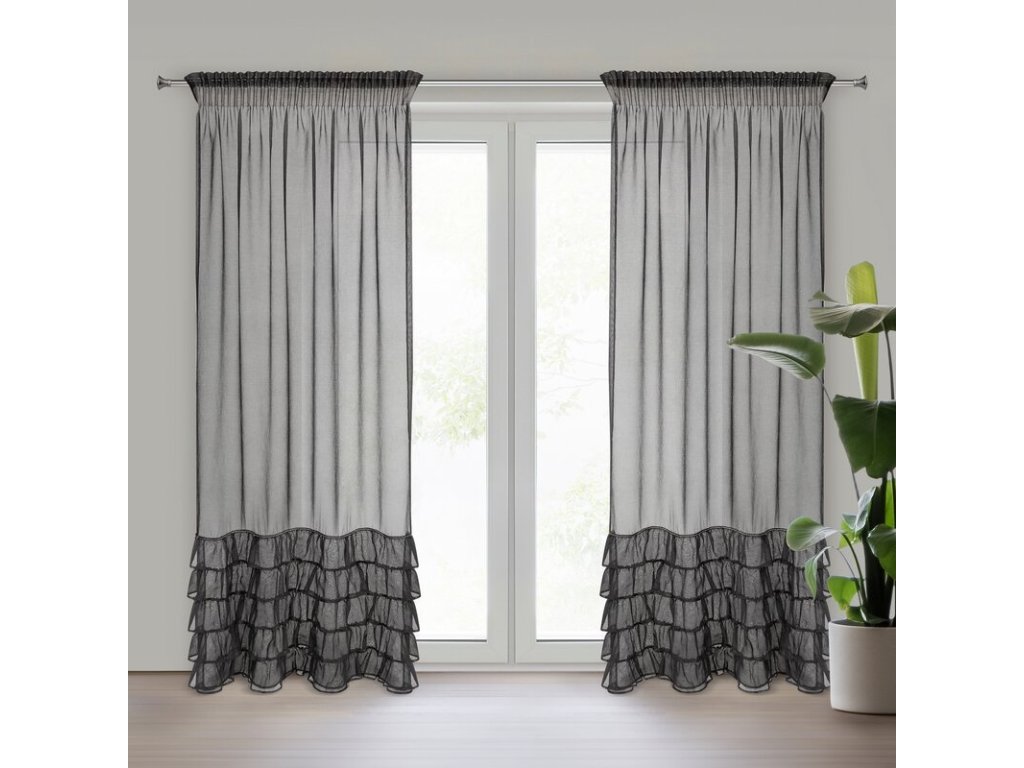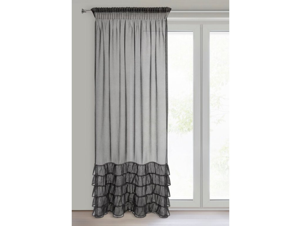 Firana gotowa z falbanami i ozdobnymi cyrkoniami szerokość: 140 cm, długość: 250 cm, kolor: ČERNÝ, Gramatura: 70 GSM, Skład: 100% poliesterDoplňkové parametry