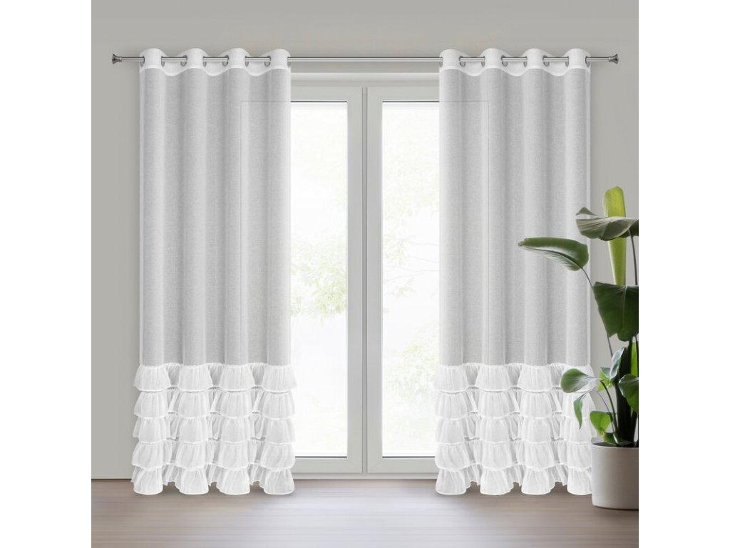Firana gotowa zdobiona w dolnej części falbankami szerokość: 140 cm, długość: 250 cm, kolor: BÍLÝ, Gramatura: 70 GSM, Skład: 100% poliesterDoplňkové parametry