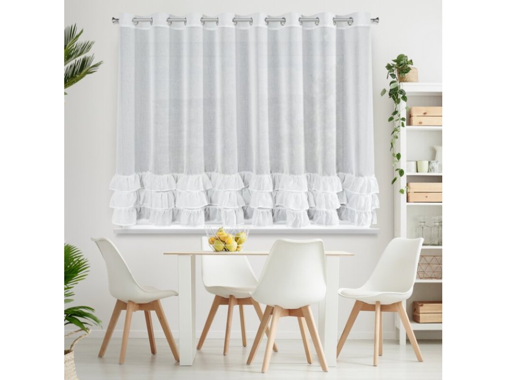Firana gotowa zdobiona w dolnej części falbankami szerokość: 300 cm, długość: 150 cm, kolor: BÍLÝ, Gramatura: 70 GSM, Skład: 100% poliesterDoplňkové parametry