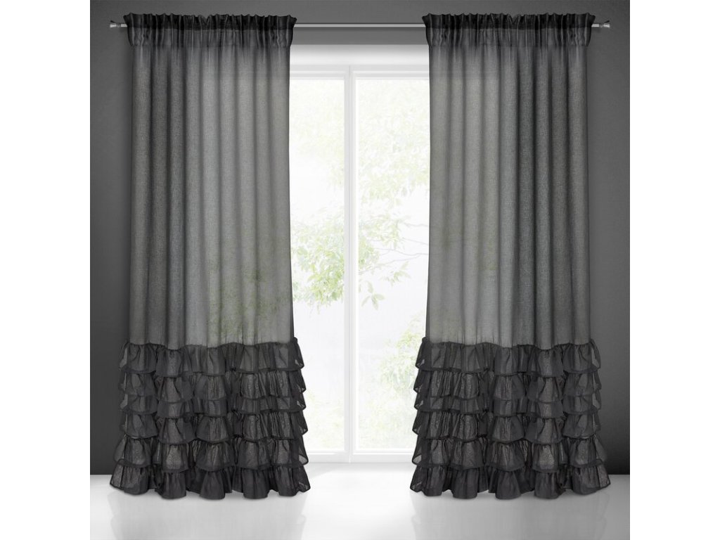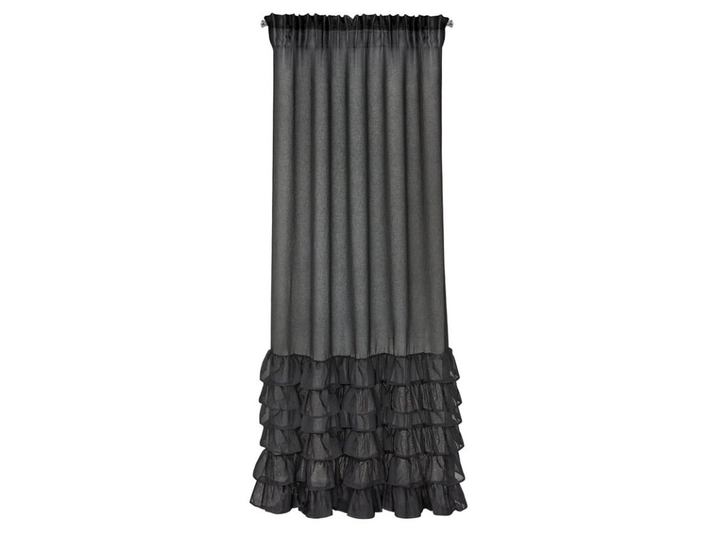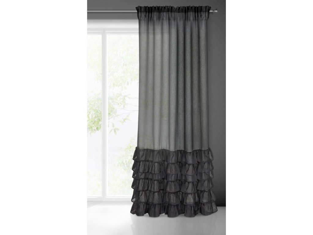 Gładka firana zdobiona falbanami posiadająca taśmę tunelową szerokość: 140 cm, długość: 250 cm, kolor: ČERNÝ, Gramatura: 80 GSM, Skład: 100% poliesterDoplňkové parametry