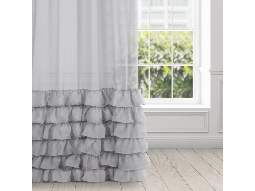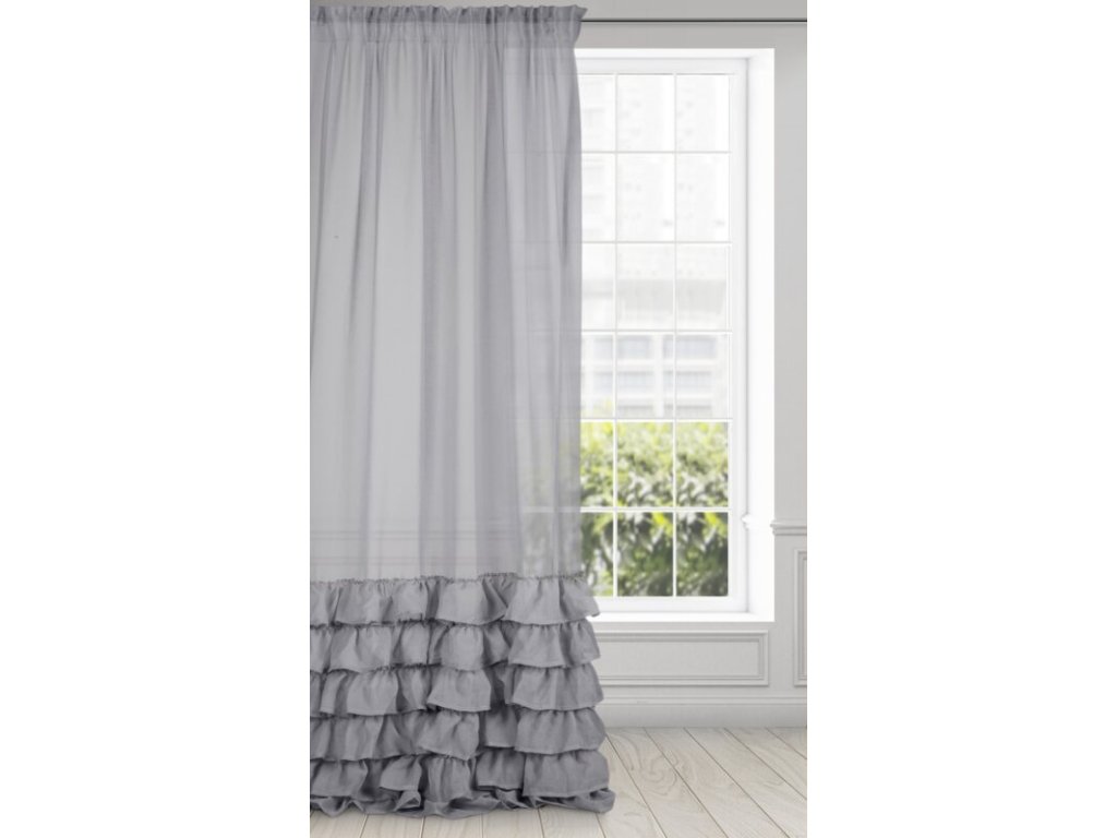 Gładka firana zdobiona falbanami posiadająca taśmę tunelową szerokość: 140 cm, długość: 250 cm, kolor: OCELOVÝ, Gramatura: 80 GSM, Skład: 100% poliesterDoplňkové parametry