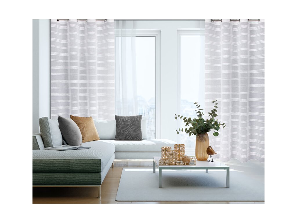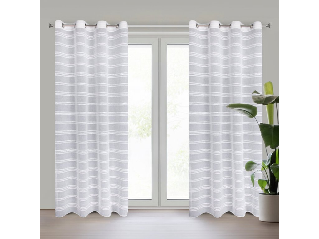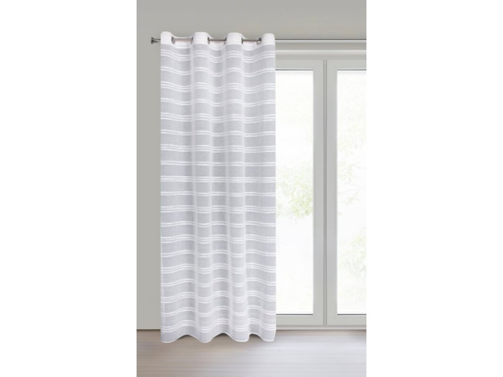Firana gotowa w stylu eko z szenilowymi pasami szerokość: 140 cm, długość: 250 cm, kolor: BÍLÝ, Gramatura: 140 GSM, Skład: 100% poliesterDoplňkové parametry