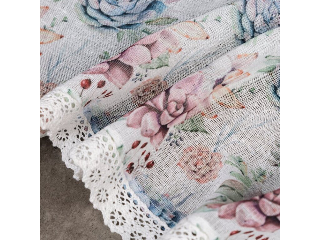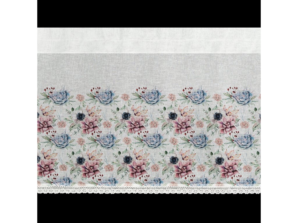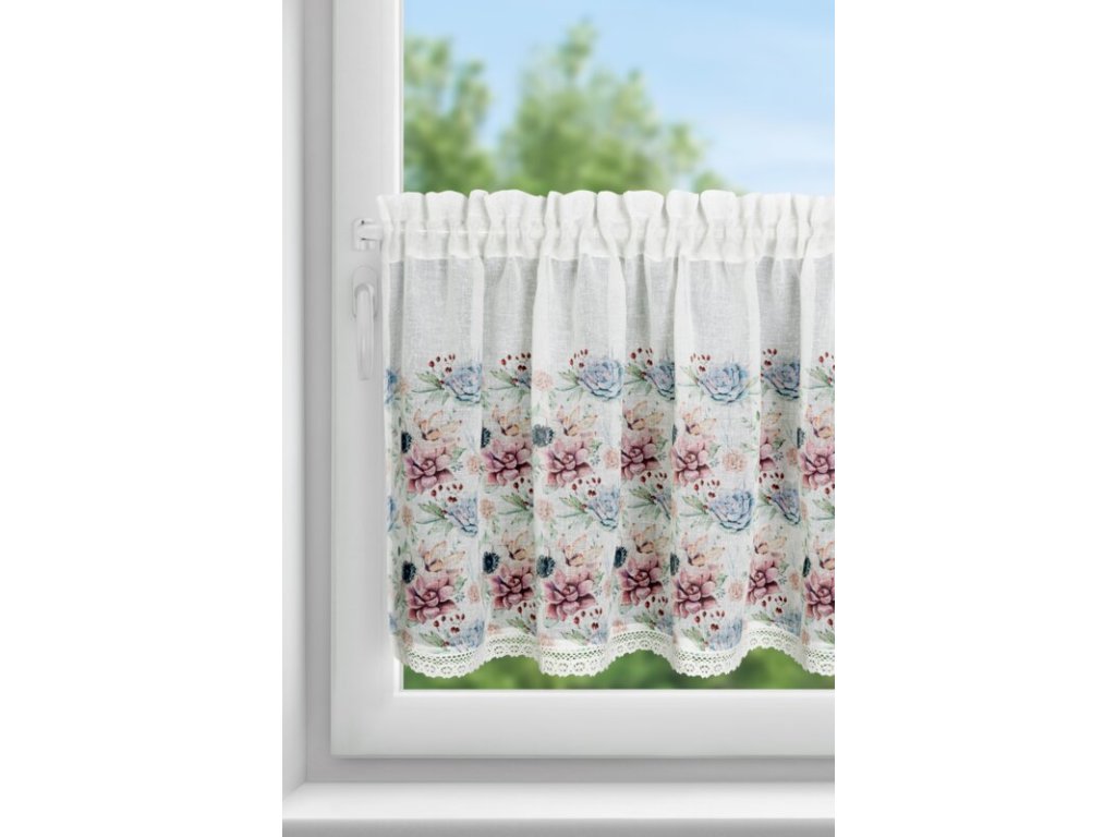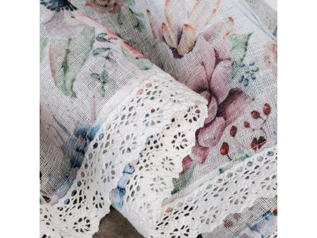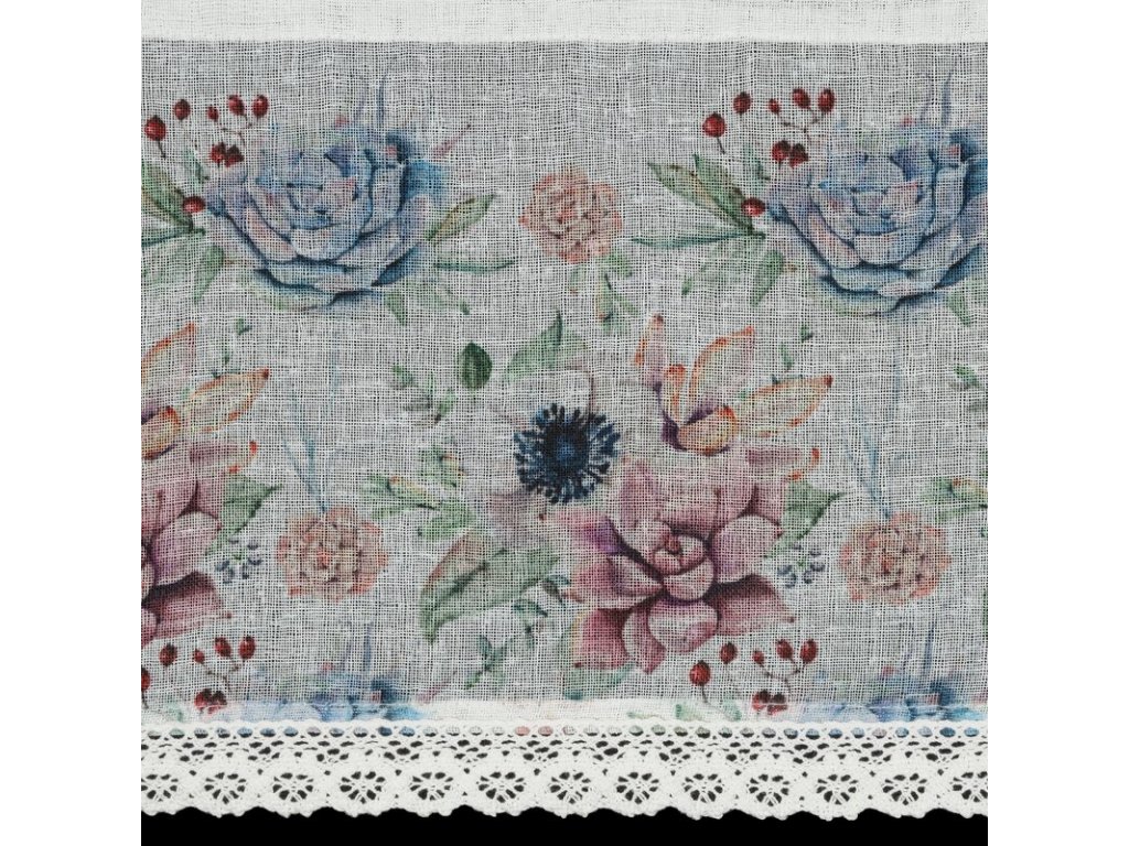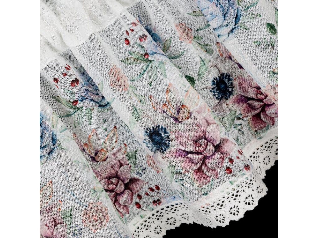 Zazdrostka z nadrukiem zdobiona koronką szerokość: 150 cm, długość: 60 cm, kolor: BÍLÝ, Gramatura: 110 GSM, Skład: 100% poliesterDoplňkové parametry