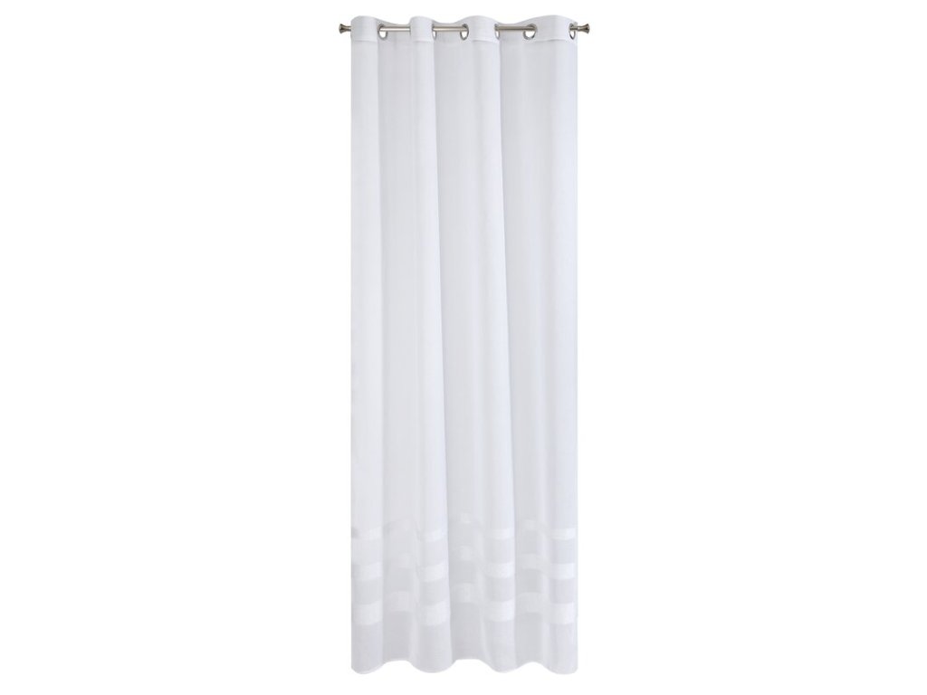 Jednokolorowa, zwiewna firana z etaminy udekorowana w dolnej części poziomymi pasami z dodatkiem moherowej nici. Bardzo lekka i prosta. Lekko się prasuje. szerokość: 140 cm, długość: 250 cm, kolor: BÍLÝ, Gramatura: 75 GSM, Skład: 100% poliesterDoplňkové parametry