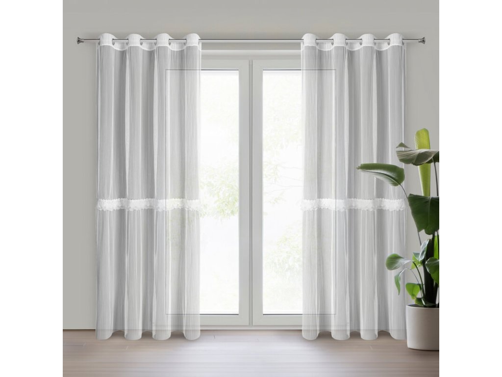 Firana gotowa zdobiona aplikacją szerokość: 140 cm, długość: 260 cm, kolor: BÍLÝ, Skład: 100% poliesterDoplňkové parametry
