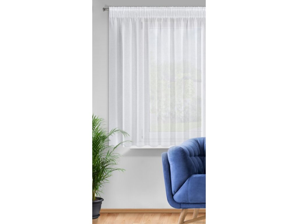 Gładka firana w kolorze klasycznej bieli to ponadczasowa dekoracja okna. Delikatna etamina, z której została uszyta, gwarantuje maksimum prywatności i światła. szerokość: 350 cm, długość: 150 cm, kolor: BÍLÝ, Gramatura: 65 GSM, Skład: 100% poliesterDoplňkové parametry