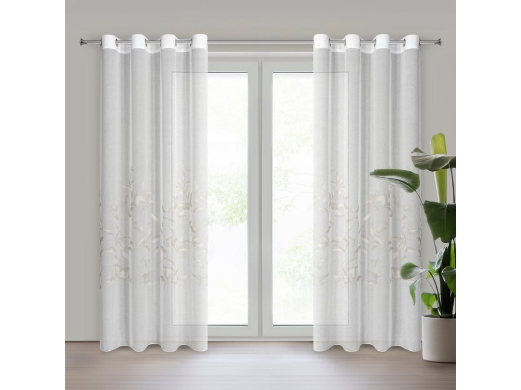Firana gotowa z motywem roślinnym szerokość: 140 cm, długość: 250 cm, kolor: BÍLÝ, Gramatura: 75 GSM, Skład: 100% poliesterDoplňkové parametry
