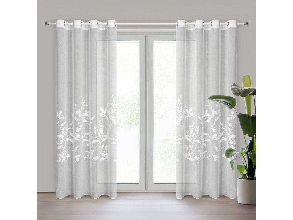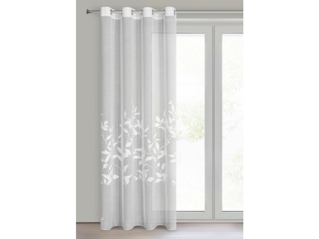 Firana gotowa z motywem roślinnym szerokość: 140 cm, długość: 250 cm, kolor: BÍLÝ, Gramatura: 75 GSM, Skład: 100% poliesterDoplňkové parametry