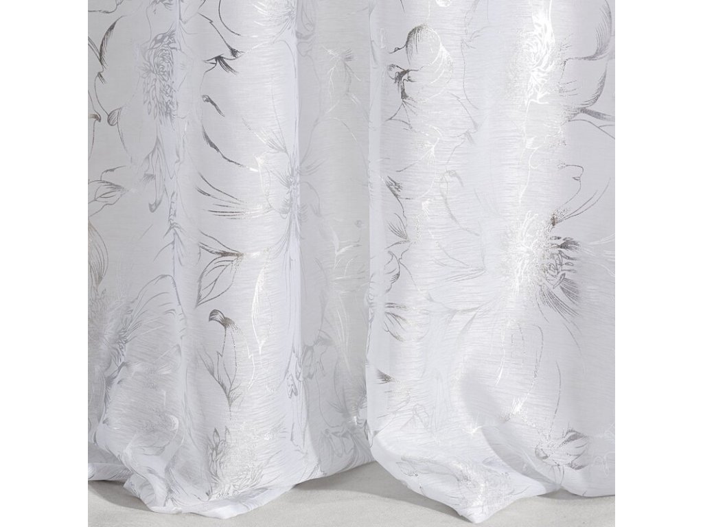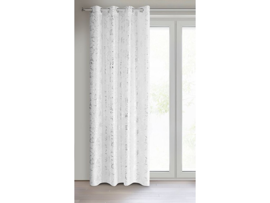 Zasłona gotowa ze STŘÍBRNÝm nadrukiem szerokość: 140 cm, długość: 250 cm, kolor: BÍLÝ, Gramatura: 50 GSM, Skład: 100% poliesterDoplňkové parametry