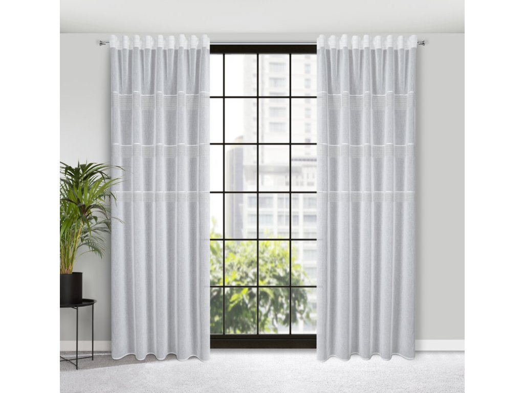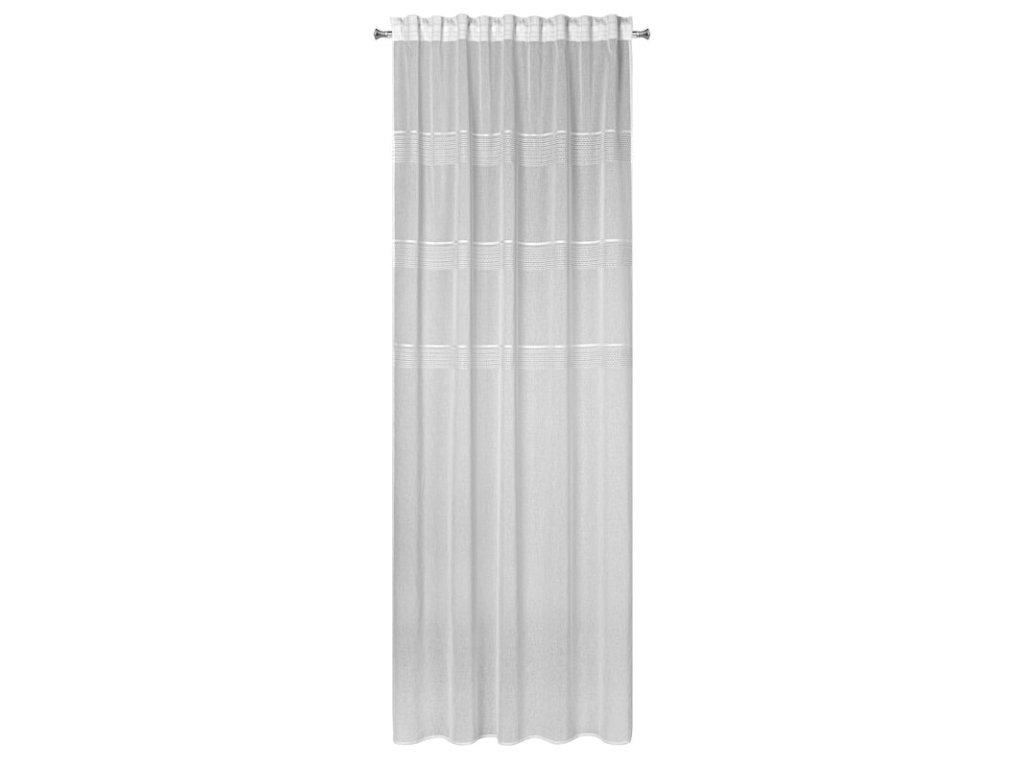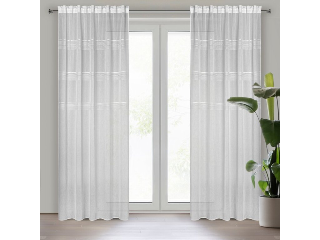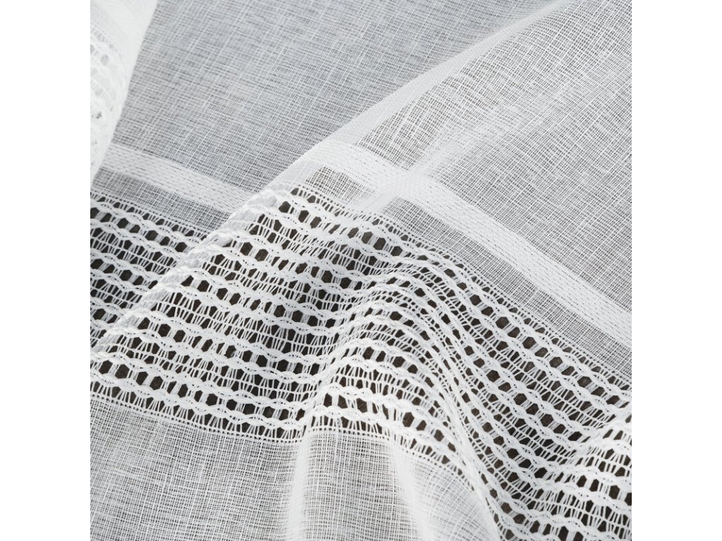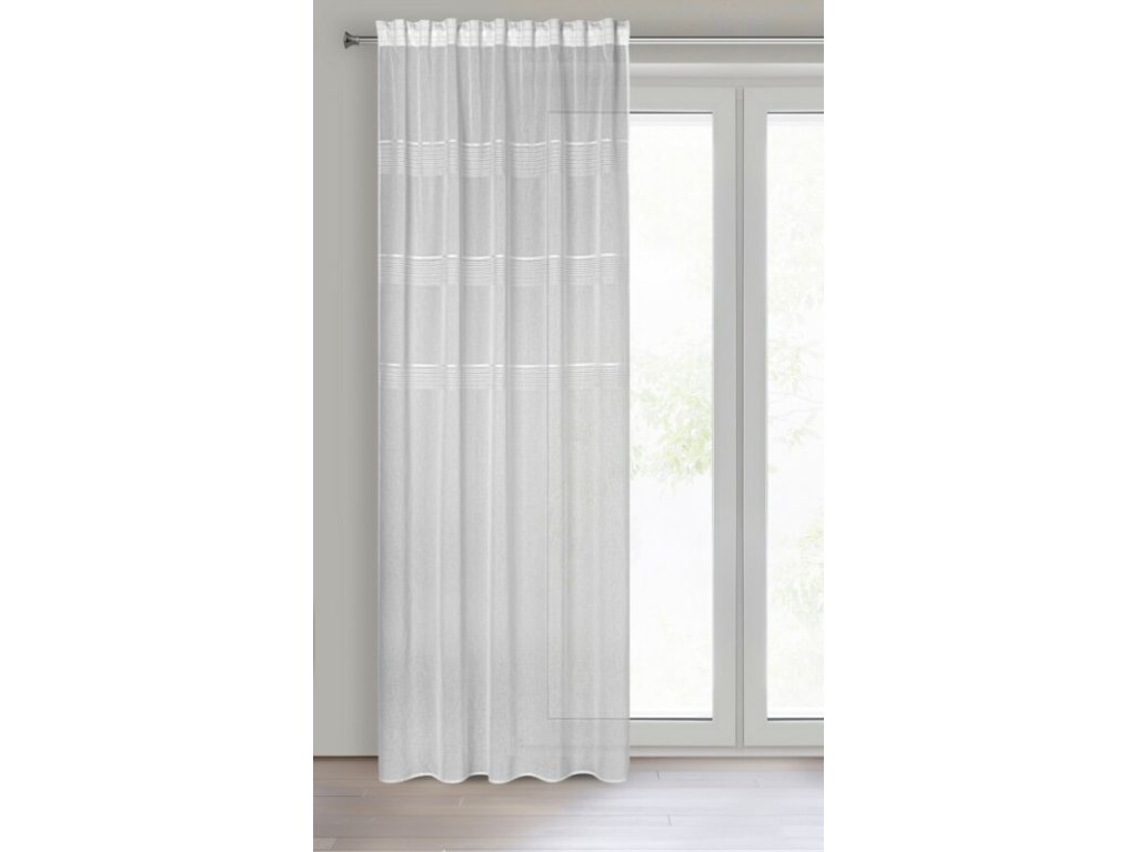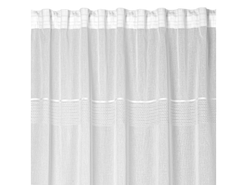 Firana gotowa zdobiona pasami o strukturze siatki,na taśmie z ukrytymi szerokość: 140 cm, długość: 270 cm, kolor: BÍLÝ, Gramatura: 110 GSM, Skład: 100% poliesterDoplňkové parametry