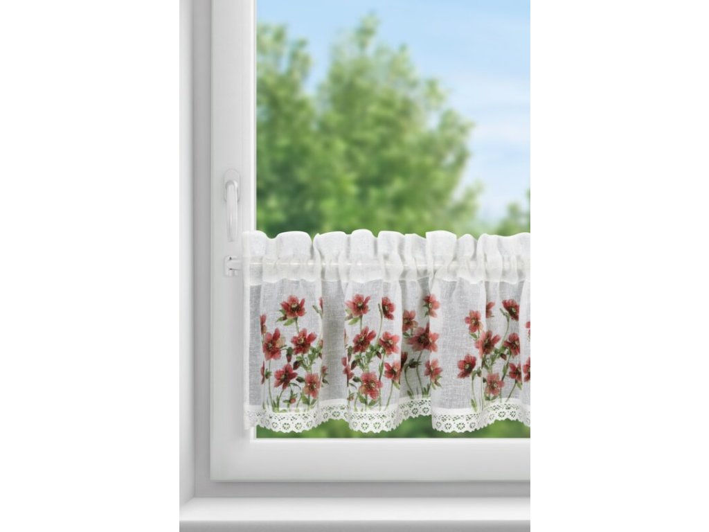 Zazdrostka z nadrukiem zdobiona koronką szerokość: 150 cm, długość: 30 cm, kolor: BÍLÝ, Gramatura: 110 GSM, Skład: 100% poliesterDoplňkové parametry