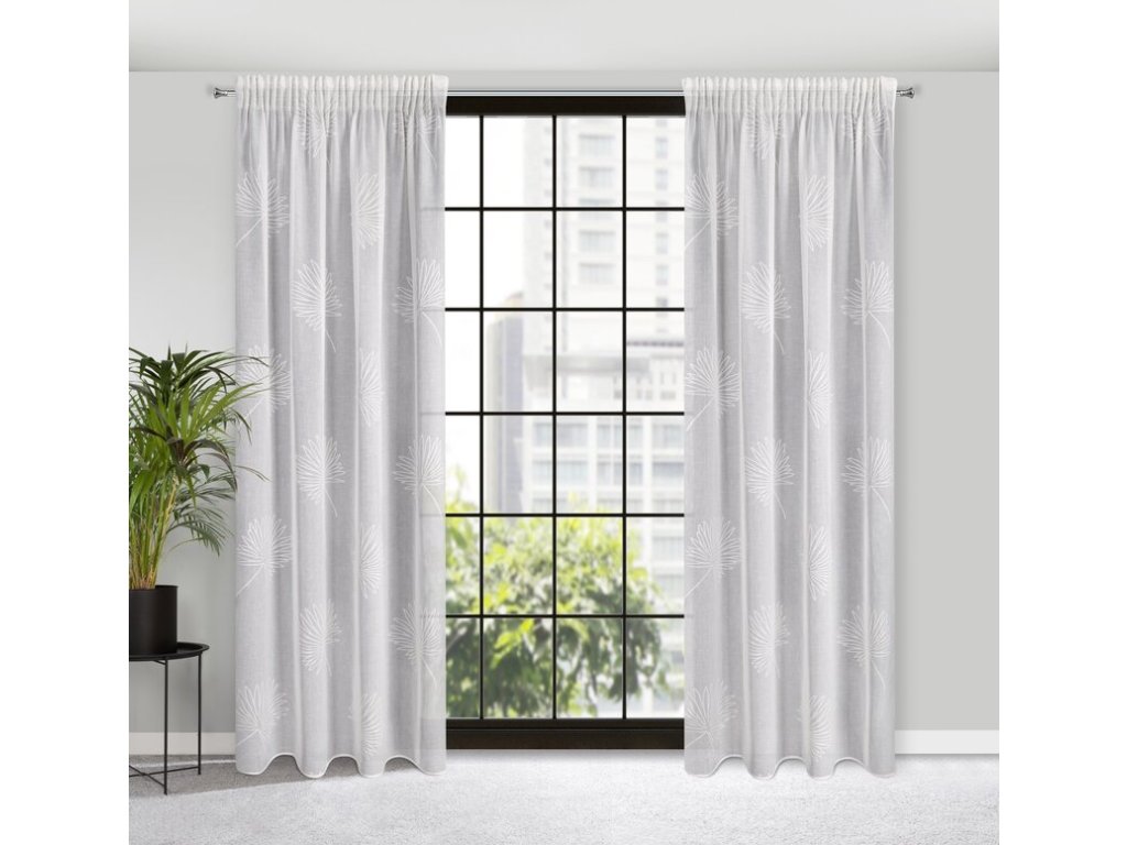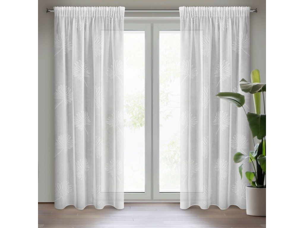 Firana gotowa zdobiona wzorem roślinnym szerokość: 140 cm, długość: 270 cm, kolor: BÍLÝ, Gramatura: 90 GSM, Skład: 100% poliesterDoplňkové parametry
