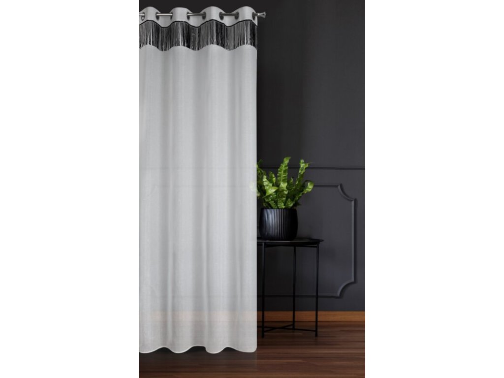 Firana jednokolorowa o strukturze drobnego deszczyku z taśmą cekinową szerokość: 140 cm, długość: 250 cm, kolor: BÍLÝ, Gramatura: 90 GSM, Skład: 100% poliesterDoplňkové parametry