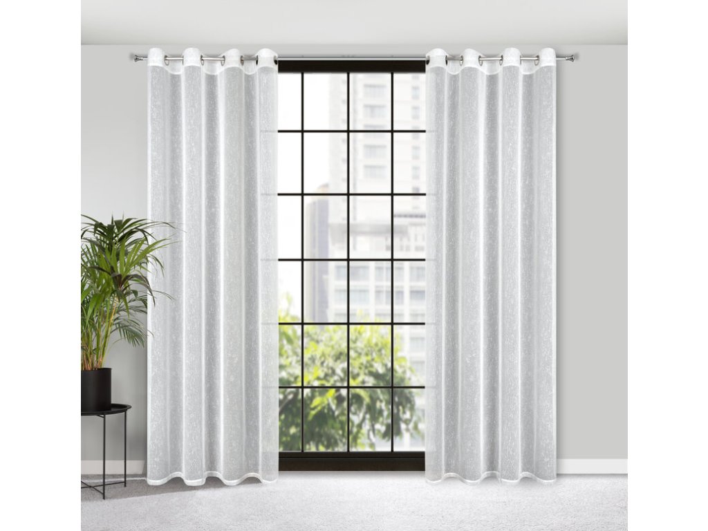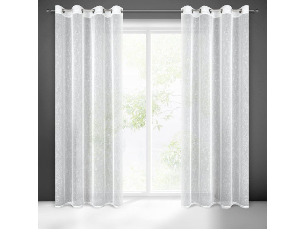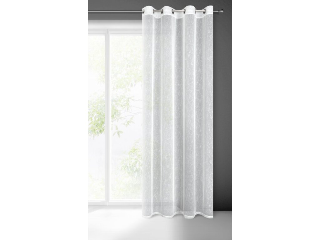 Firana gotowa o strukturze deszczyku zdobiona srebrną nicią szerokość: 140 cm, długość: 250 cm, kolor: BÍLÝ, Gramatura: 80 GSM, Skład: 100% poliesterDoplňkové parametry