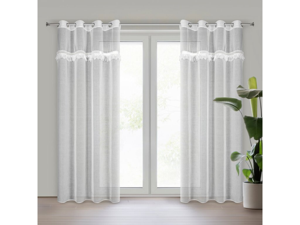 Firana gotowa zdobiona obszywką szerokość: 140 cm, długość: 250 cm, kolor: BÍLÝ, Gramatura: 68 GSM, Skład: 100% poliesterDoplňkové parametry