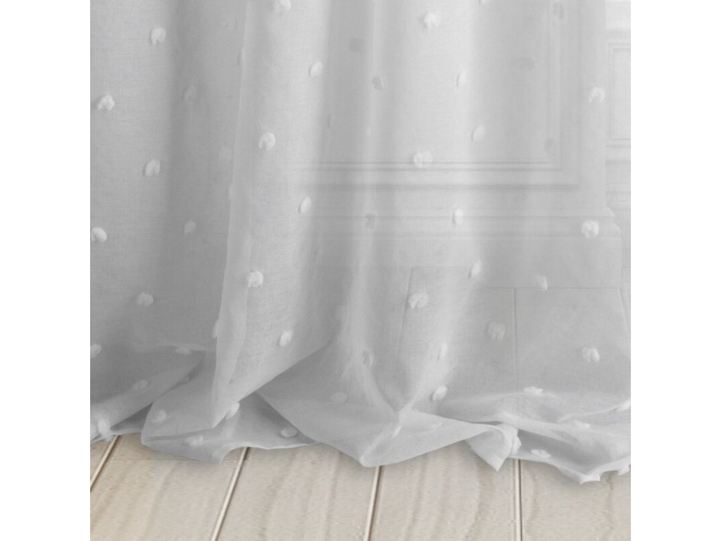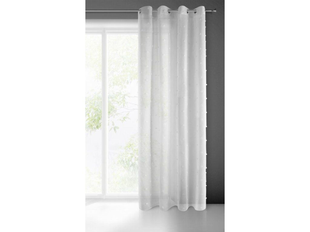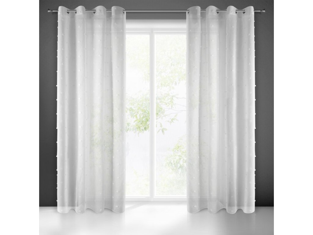 Delikatna firana z lekkiej tkaniny ozdobionej drobną aplikacją w formie naszywanych kuleczek. Nowoczesna firana miękko się układa. Doskonała w roli zasłony. szerokość: 140 cm, długość: 250 cm, kolor: BÍLÝ, Gramatura: 80 GSM, Skład: 100% poliesterDoplňkové parametry